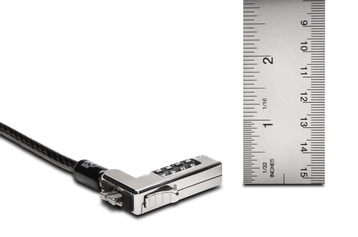 Wąska, niskoprofilowa głowica zamka nie unosi cienkich laptopów ani urządzeń 2-w-1 ponad blat, dzięki czemu klawiatura i ekran pozostają w idealnej pozycji. Solidna konstrukcja spełnia rygorystyczne testy przemysłowe momentu obrotowego/siły ciągu, odporności na narzędzia, cyklu żywotności, korozji i innych warunków.