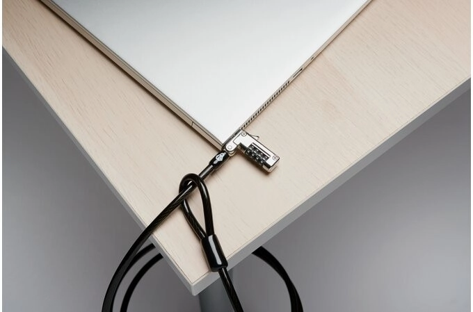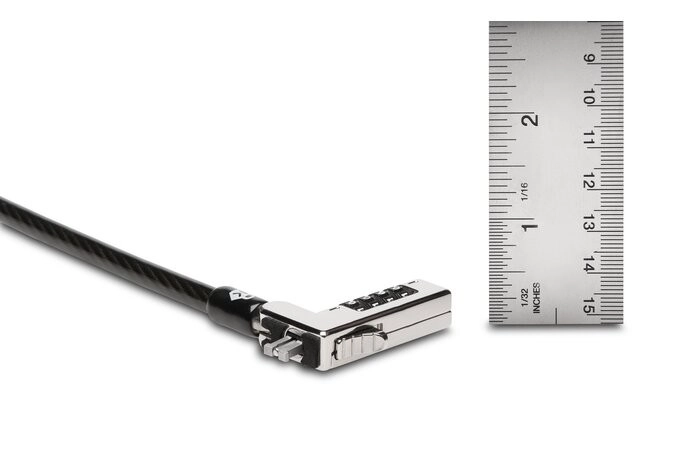 KENSINGTON NanoSaver Slim zamek z kombinacją został zaprojektowany dla nowoczesnych, smukłych laptopów z nano gniazdem zabezpieczającym. Zapewnia wysoki poziom ochrony fizycznej dzięki wytrzymałej stalowej lince 6,5 mm o długości 1,8 m z powłoką chroniącą przed przecięciem, która jednocześnie zabezpiecza powierzchnie mebli.