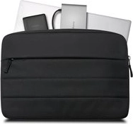 Lekkie i wytrzymałe etui na laptopy i tablety do 14″ z materiałów z recyklingu. Wykonane w 58% z poliestru PCR (około 8,1 przetworzonych butelek PET), zapewnia niezawodną ochronę przed zarysowaniami, uderzeniami i upadkami, ma zewnętrzną kieszeń na akcesoria i łatwo mieści się w plecaku lub torbie.