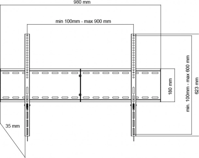 Wiele podłużnych otworów i punktów montażowych ułatwia precyzyjne dopasowanie do rozstawu Twojego TV od 55 do 100 cali.