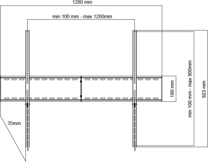 Wiele otworów i podłużnych szczelin ułatwia precyzyjne wycentrowanie TV i obsługuje szeroki zakres rozmiarów VESA do 1200 × 900.