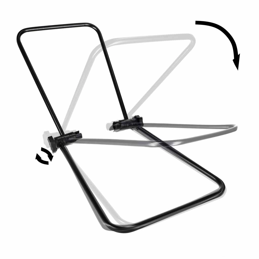 Po użyciu stojak łatwo złożyć do kompaktowych rozmiarów, co docenisz w małym mieszkaniu, garażu i warsztacie. Uniwersalna konstrukcja pasuje do szerokiej gamy rowerów, a gumowe powierzchnie kontaktu chronią ramę i powierzchnię piasty.