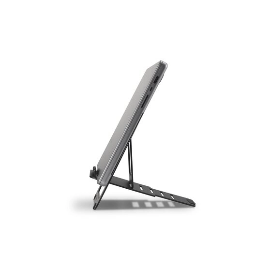 Lekka i wytrzymała aluminiowa podstawka pod laptop EQ z aluminium w 100% z recyklingu poprawia ergonomię i chłodzenie Twojego urządzenia. Oferuje pięć ustawień wysokości i kąta do 252 mm, ultracienką składaną konstrukcję dla łatwego przenoszenia oraz stabilne podparcie dla laptopów i tabletów 10–17" do 3 kg. Certyfikat IGR potwierdza jej korzyści ergonomiczne dla komfortowej pracy siedzącej i stojącej.