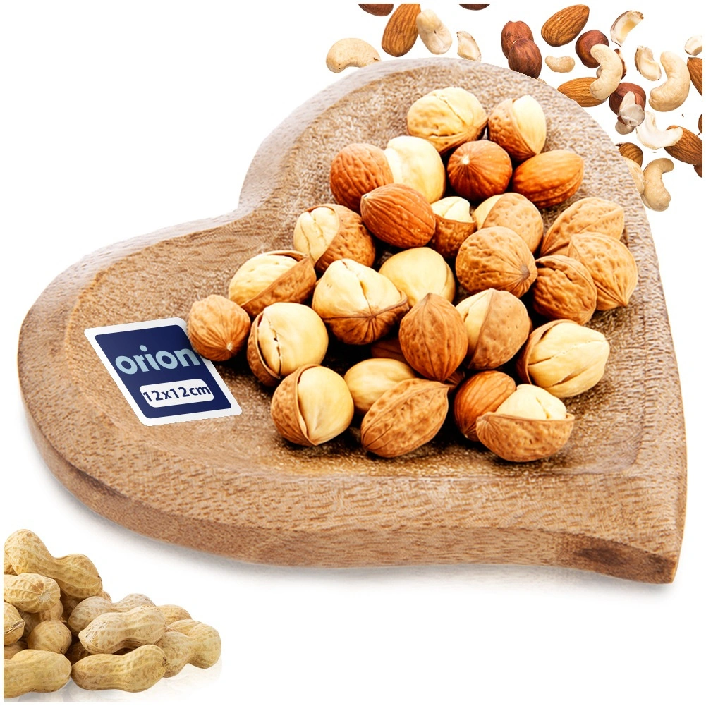 Stylowa miska w kształcie serca z naturalnego drewna mango do atrakcyjnego serwowania orzechów, oliwek, suszonych owoców lub pralinek. Ręcznie wykonana z jednego kawałka drewna, z gładkimi krawędziami i płytkim reliefem dla łatwego podawania. Trwała, dekoracyjna i uniwersalna – doskonale uzupełni każdy stół w domu i gastronomii.