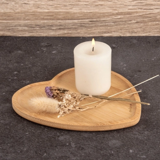Elegancki bambusowy talerzyk w kształcie serca doda każdemu stołowi szyku. Doskonale sprawdzi się do serwowania deserów, ciasteczek, owoców i słonych przysmaków, a także jako dekoracyjna taca pod świece lub drobne aranżacje. Naturalny bambus wyróżnia się wytrzymałością, odpornością i łatwą pielęgnacją.