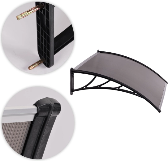 Elegancki daszek nad wejście z poliwęglanu zapewni Twoim drzwiom niezawodną ochronę przed pogodą. Dzięki wytrzymałej konstrukcji z tworzywa i półprzezroczystej płycie z poliwęglanu (5 mm) skutecznie chroni przed deszczem, śniegiem i słońcem. Modułowa konstrukcja umożliwia łączenie kilku daszków w dłuższe zestawy. W komplecie pełny zestaw montażowy z 3 typami kotew do różnych podłoży, dzięki czemu montaż jest szybki i bezpieczny.