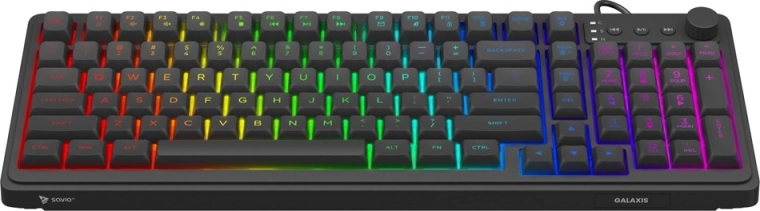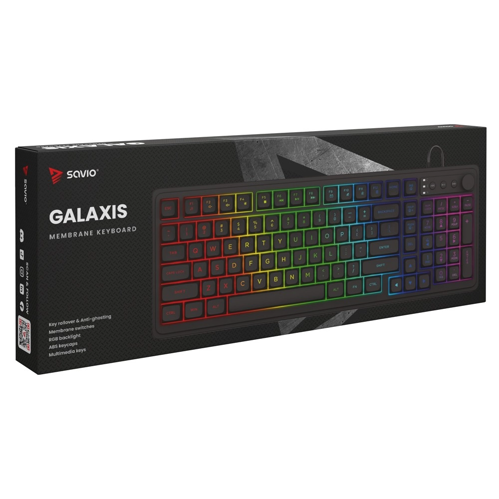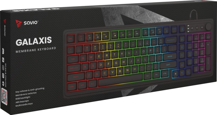 Gamingowa klawiatura GALAXIS łączy ergonomię, design i niezawodność dla płynnej kontroli w grach i podczas pracy. Wielokolorowe podświetlenie RGB podkreśli Twoje stanowisko i ułatwi orientację w ciemności, a ciche przełączniki membranowe zapewnią komfortowe pisanie bez rozpraszania otoczenia.