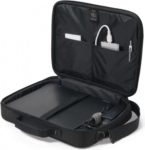 Przednie kieszenie i wewnętrzne przegrody utrzymują ładowarki, mysz i dokumenty w porządku i pod ręką – idealnie na co dzień i w podróże służbowe.