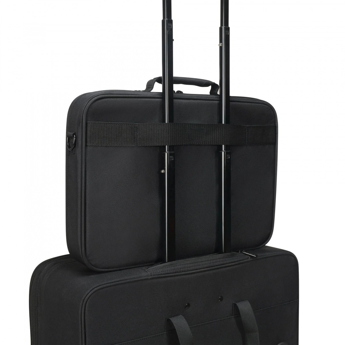 Dzięki sprytnemu wewnętrznemu układowi z łatwością uporządkujesz dokumenty, ładowarki i drobne akcesoria. Wyściełana komora z paskiem bezpieczeństwa oraz metalowa rama stabilnie utrzymują laptop na miejscu i chronią go przed uderzeniami. Górne uchwyty, regulowany i odpinany pasek na ramię oraz pas do mocowania na rączce walizki zwiększają komfort podczas codziennych dojazdów i podróży.