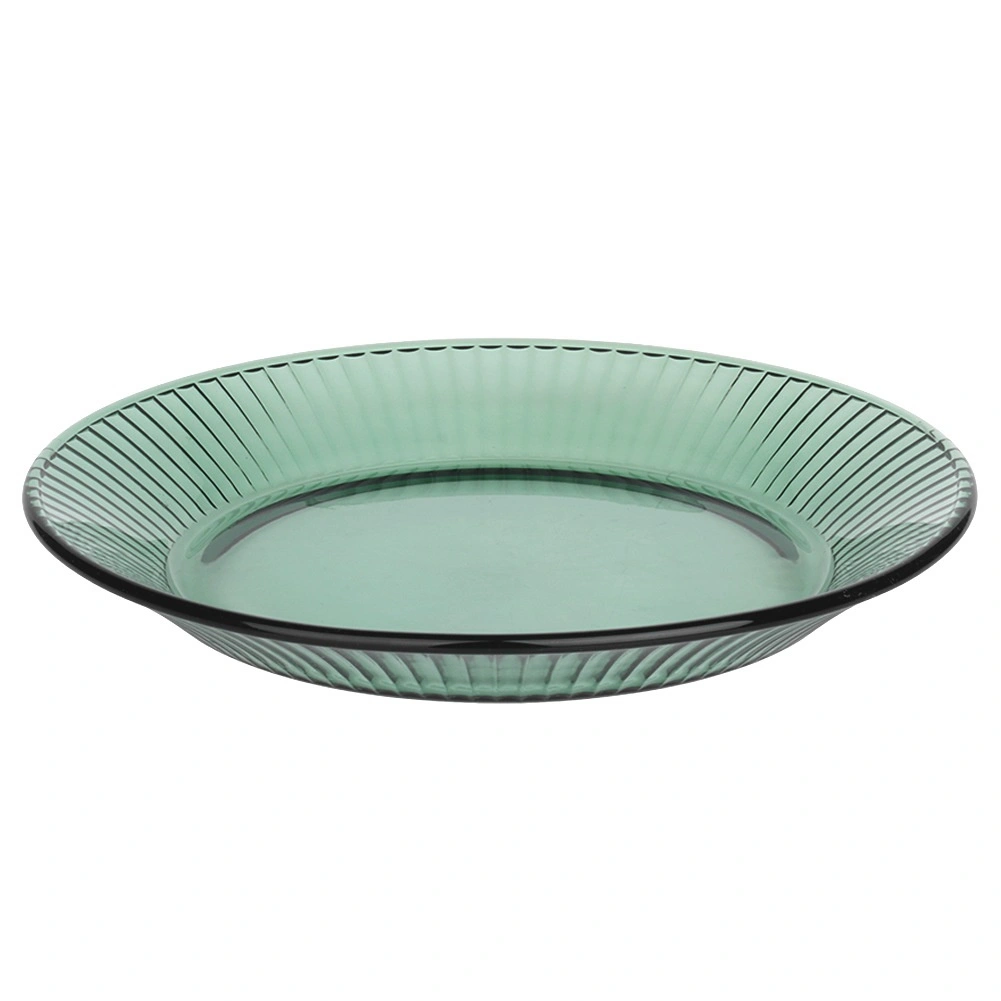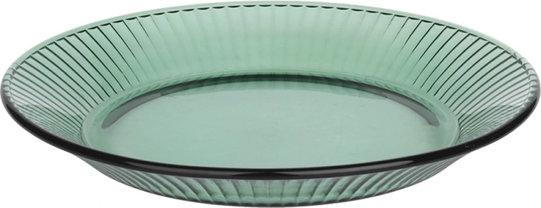 Stylowy szklany talerz deserowy VERDE o średnicy 20,5 cm zachwyca półprzezroczystym zielonym szkłem z żłobioną krawędzią. Idealny do serwowania tortów, deserów i przekąsek, odpowiedni na co dzień i na uroczyste okazje. Łatwa pielęgnacja – można myć w zmywarce.