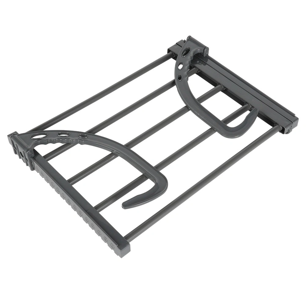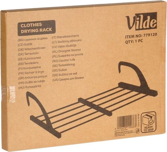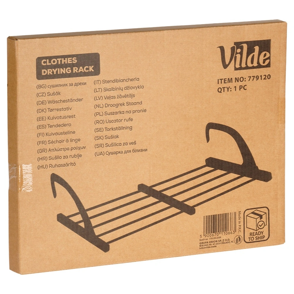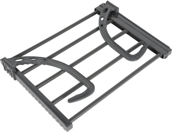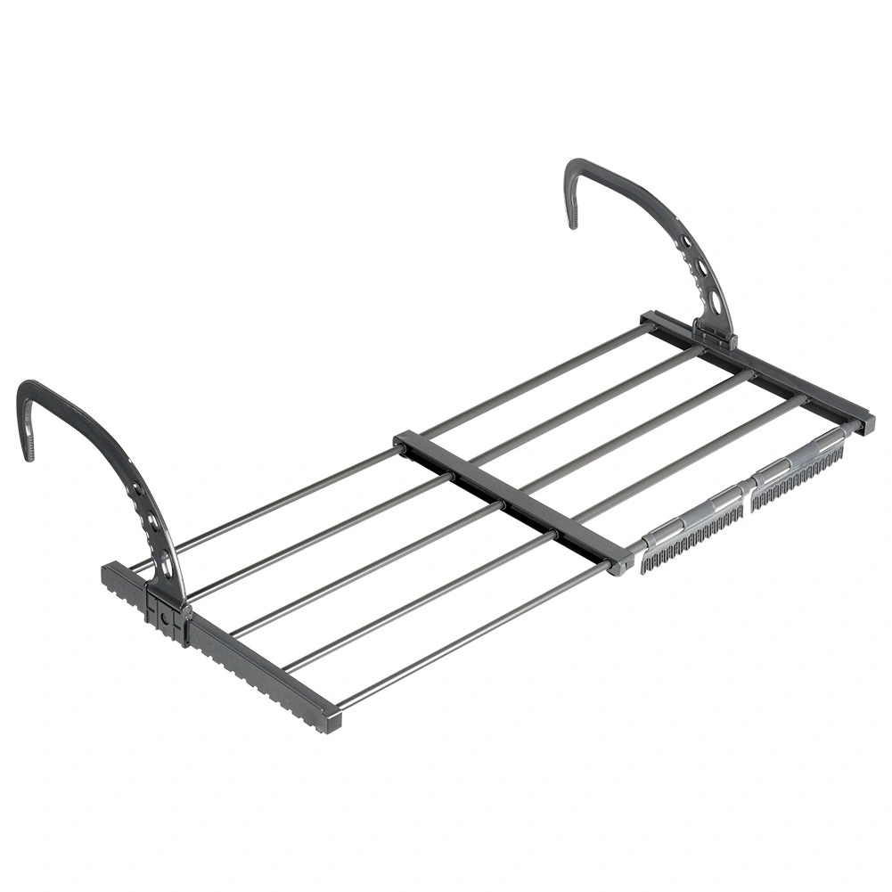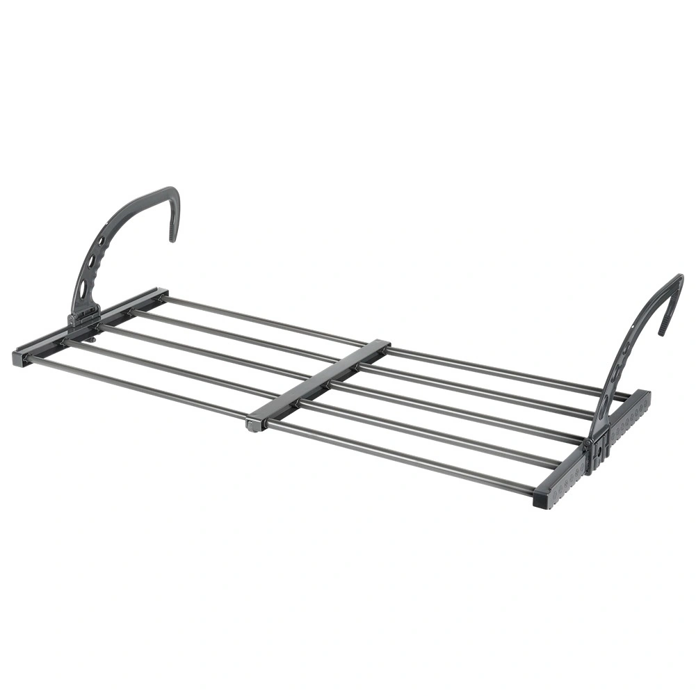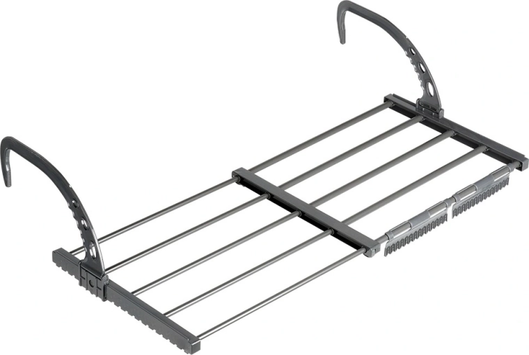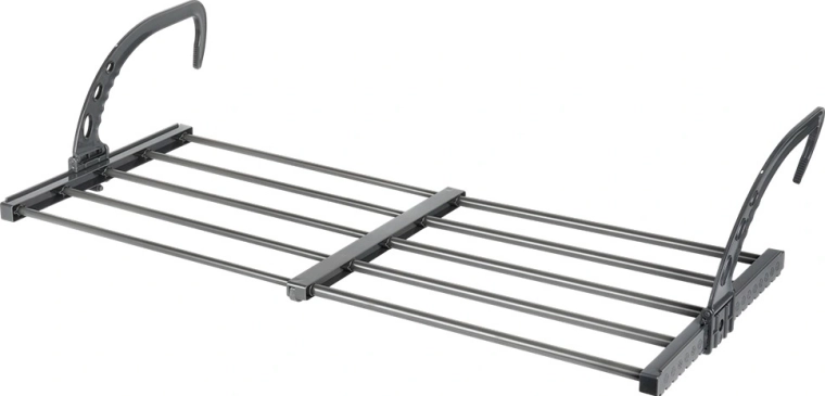 Dzięki składanym, regulowanym wysokościowo hakom łatwo zawiesisz ją na grzejniku o szerokości do 13 cm, a także na balkonowej lub tarasowej balustradzie. Dwa dołączone uchwyty ułatwiają suszenie drobnej bielizny i skarpet. Po złożeniu zajmuje minimum miejsca, dlatego świetnie sprawdzi się również w podróży.