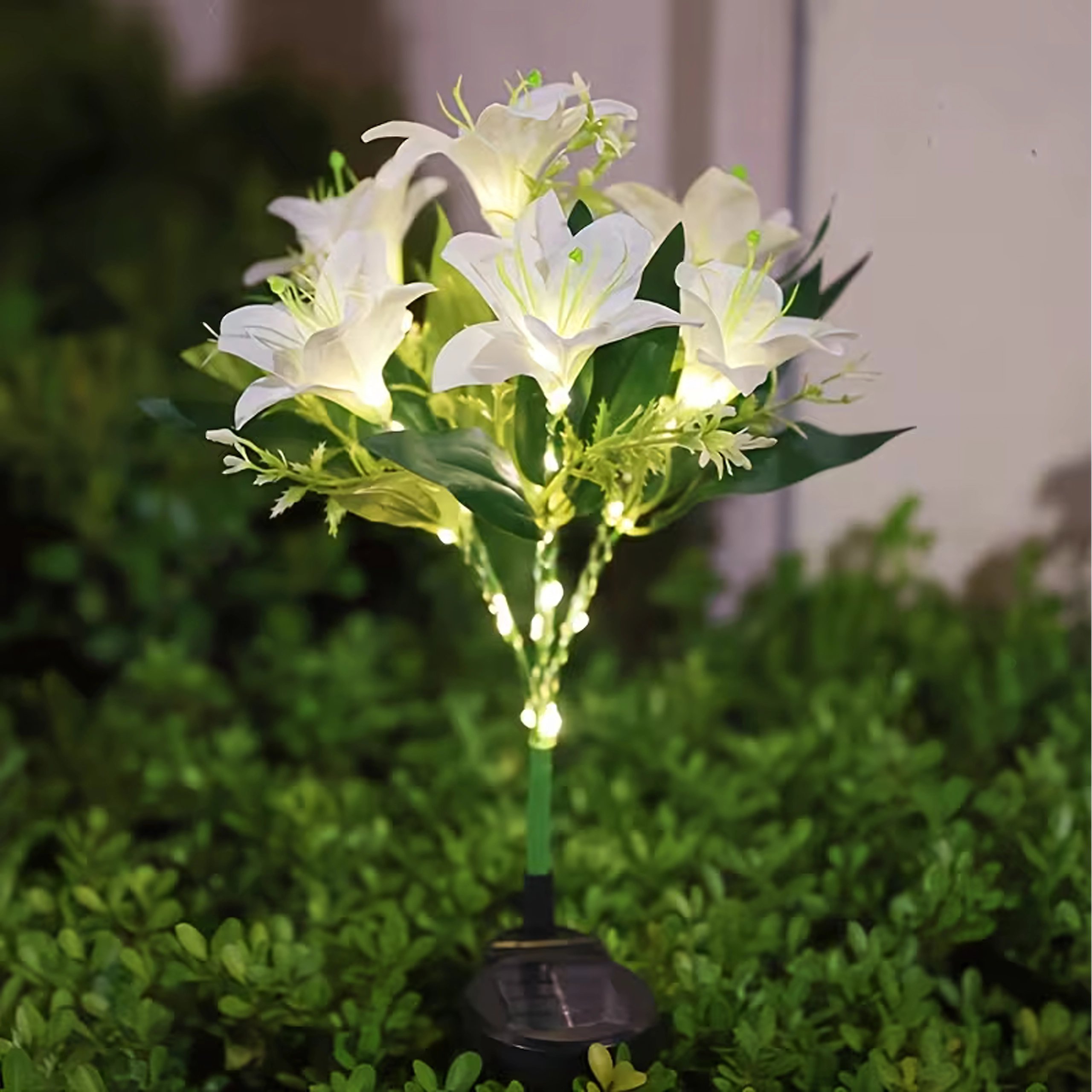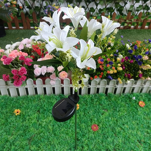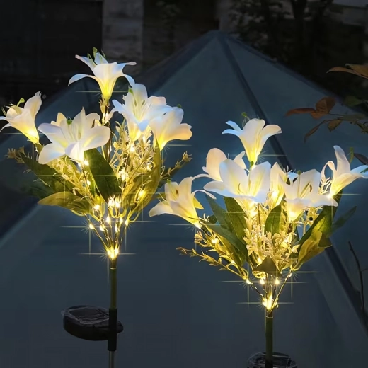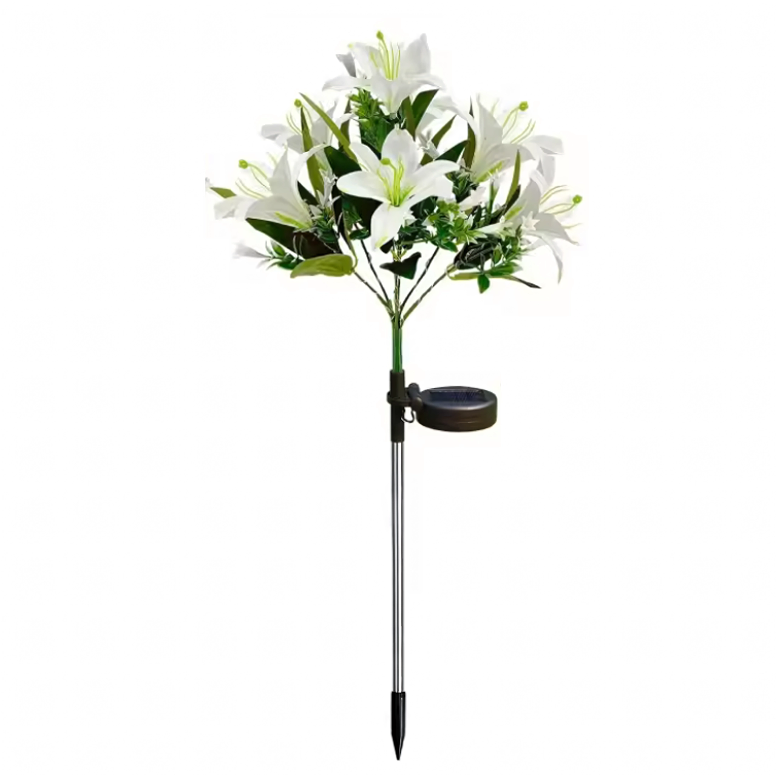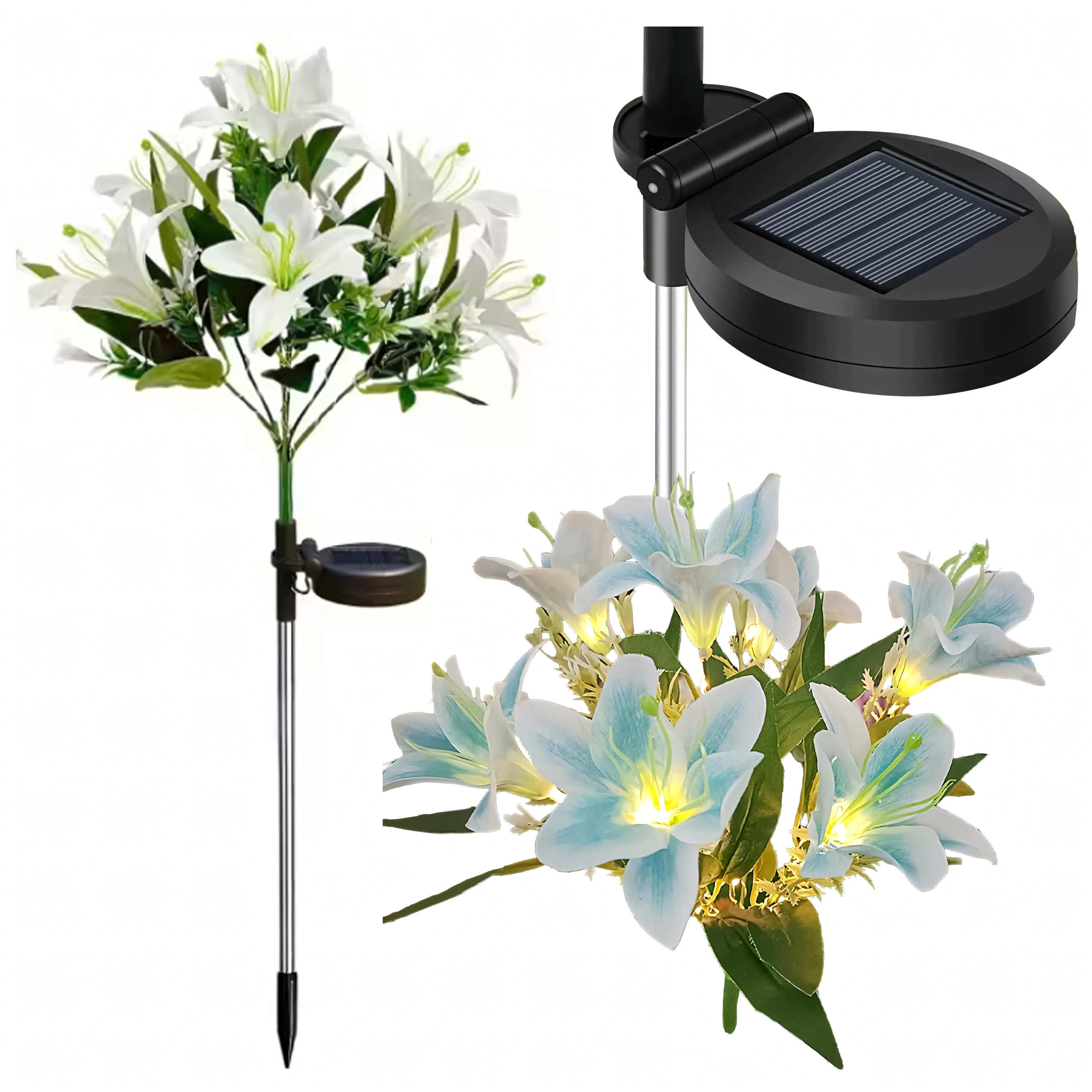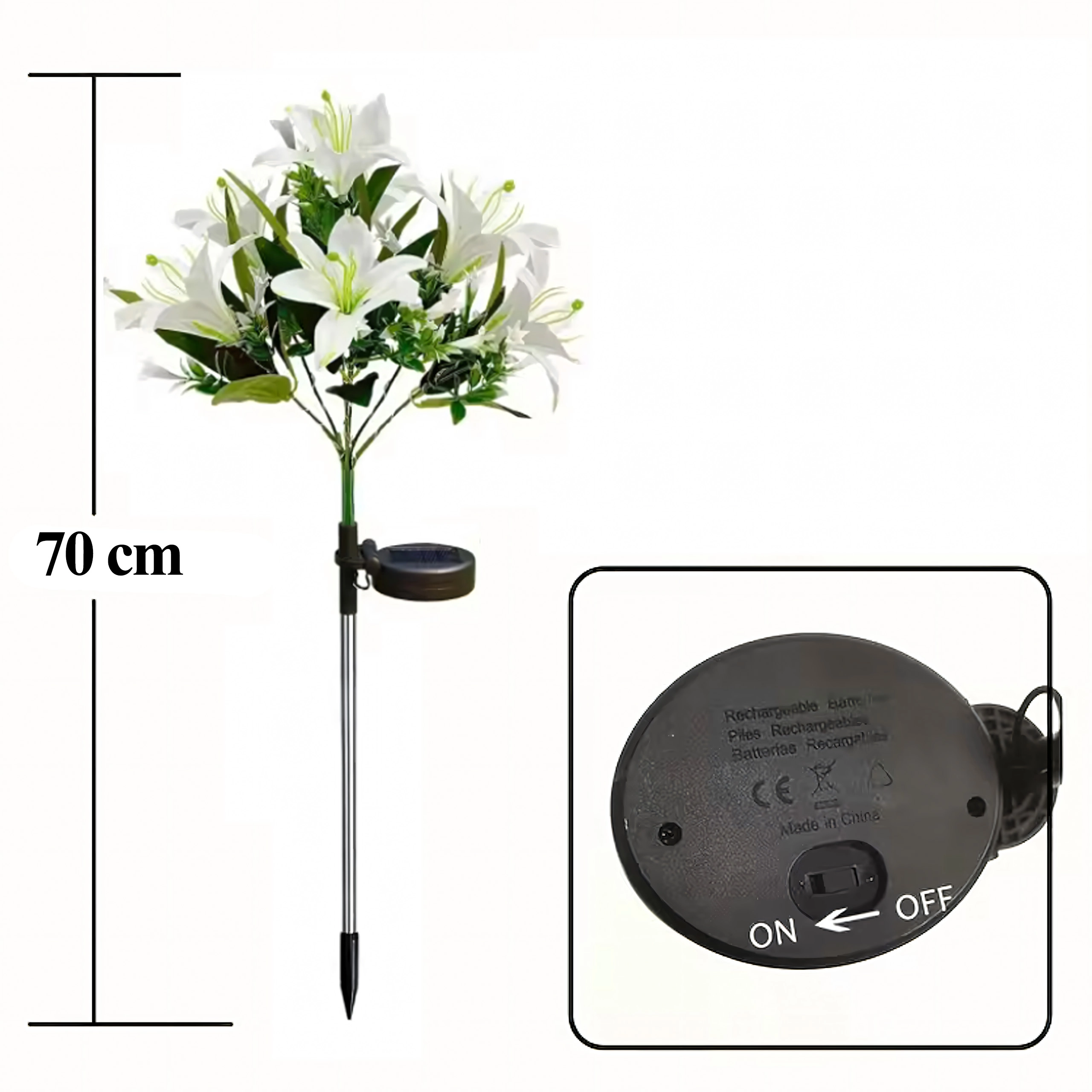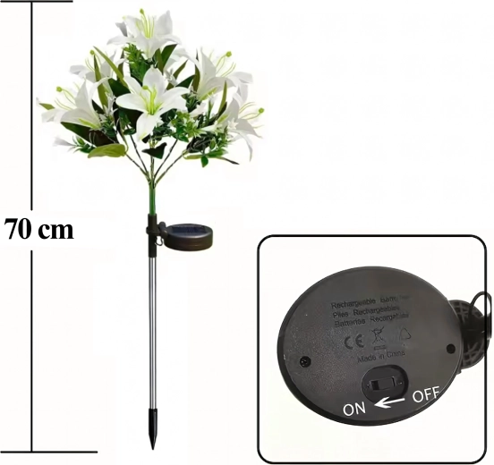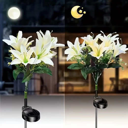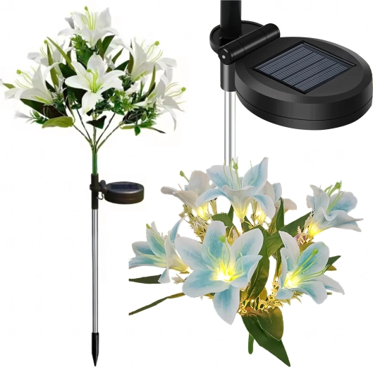 Dekoracyjna solarna lampa w kształcie lilii rozświetli Twój ogród, balkon lub taras przyjemnym ciepłym światłem. Dzięki zasilaniu solarnemu w ciągu dnia się ładuje, a wieczorem automatycznie się włącza. Wytrzymała konstrukcja, realistyczne kwiaty oraz łatwy montaż poprzez proste wbicie w ziemię sprawiają, że to stylowa i bezobsługowa dekoracja zewnętrzna z energooszczędnymi LED i automatycznym świeceniem po zmroku.