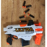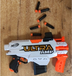Ciesz się dynamiczną zabawą z blasterem NERF Ultra AMP, który łączy napęd silnikowy dla szybkiego strzelania, ergonomiczny uchwyt dla pewnego trzymania oraz zintegrowany celownik dla lepszej celności. Kompaktowa konstrukcja ułatwia obsługę zarówno dzieciom, jak i dorosłym.