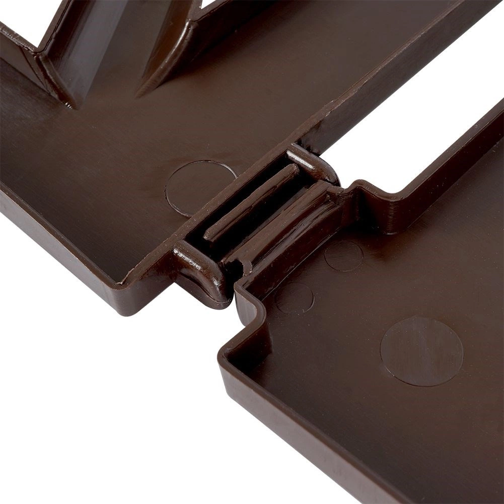Dekoracyjny brązowy płotek ogrodowy z wytrzymałego plastiku nadaje rabatom i ścieżkom schludny wygląd oraz wyraźne obramowanie. Zestaw 6 sztuk o wymiarach 50 × 30 cm (łącznie 300 cm) jest łatwy w montażu dzięki szpilkom do wbijania i bocznym zamkom. Odporność na mróz, promieniowanie UV i deszcz, łatwy montaż bez narzędzi oraz elegancki, ażurowy design dla długotrwale zadbanego ogrodu.