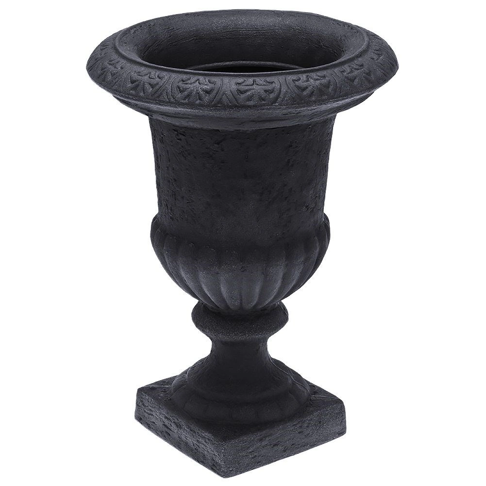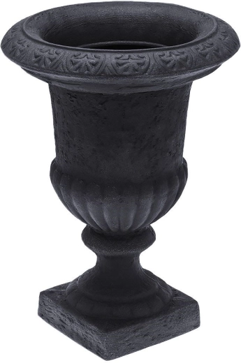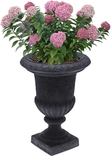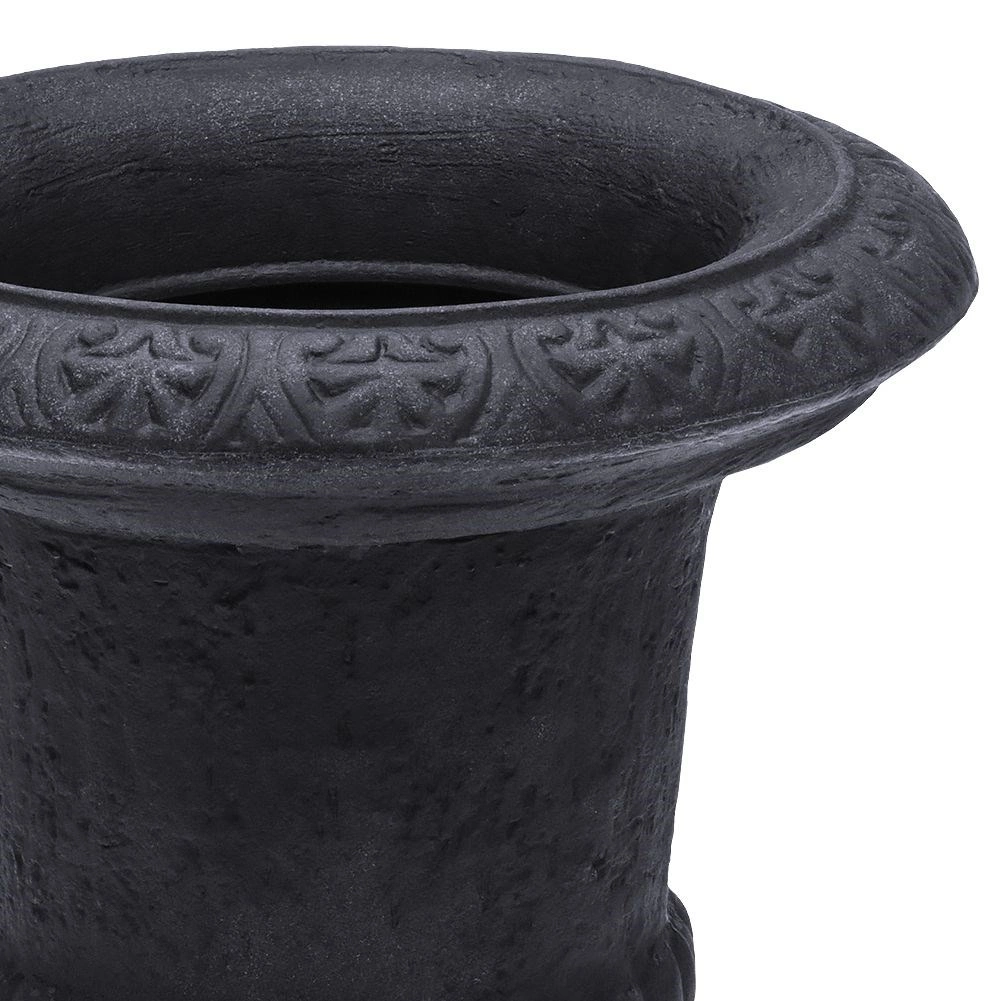 Elegancka ogrodowa donica w kształcie kielicha o wysokości 54 cm i średnicy 38,5 cm w kolorze antracytowym. Dzięki materiałowi imitującemu kamień jest lekka, a jednocześnie bardzo wytrzymała, odpowiednia do całorocznego użytku na zewnątrz. Doskonale sprawdzi się na tarasie, balkonie i przy wejściu, gdzie podkreśli rośliny ozdobne i kwiaty swoim klasycznym, dekoracyjnym designem.