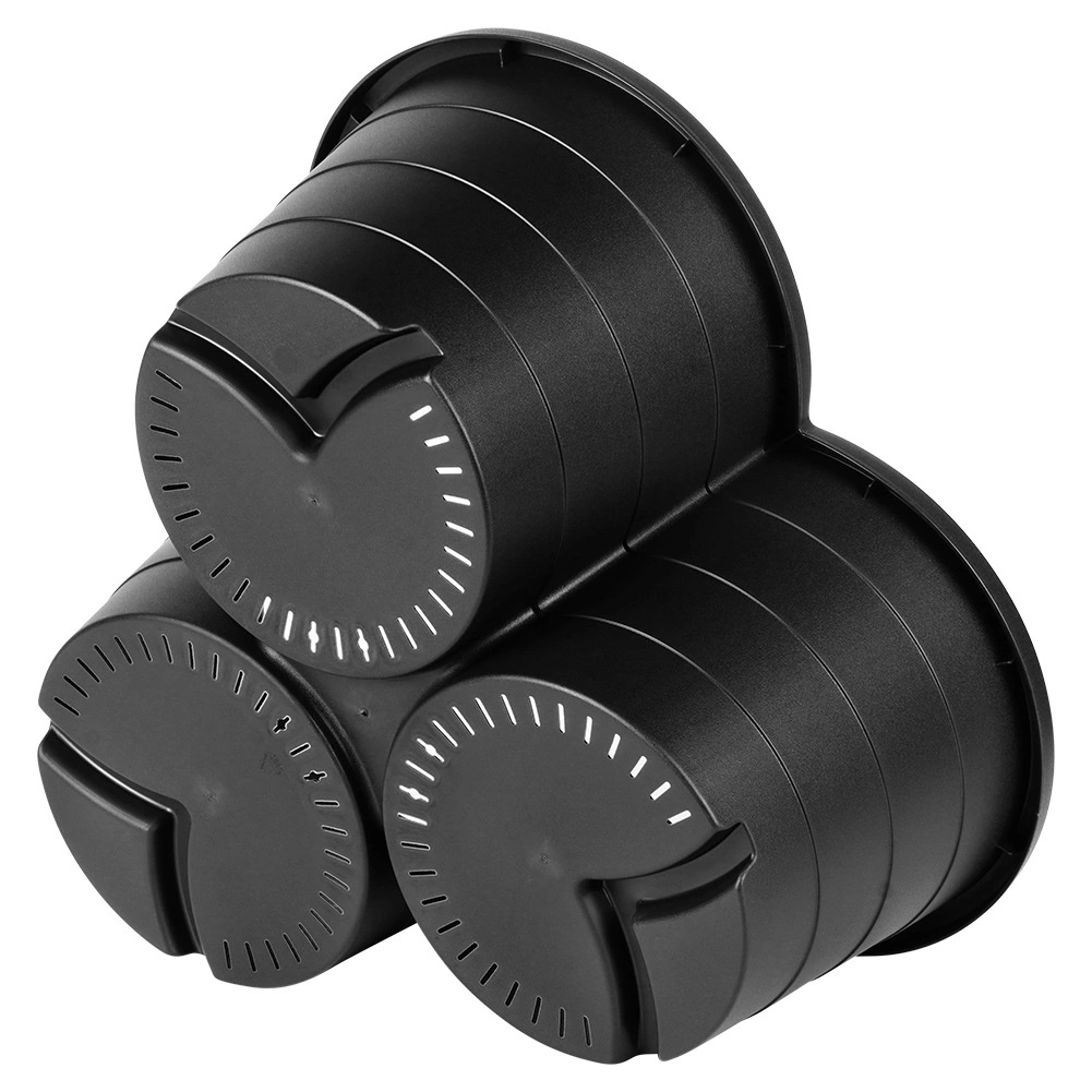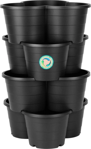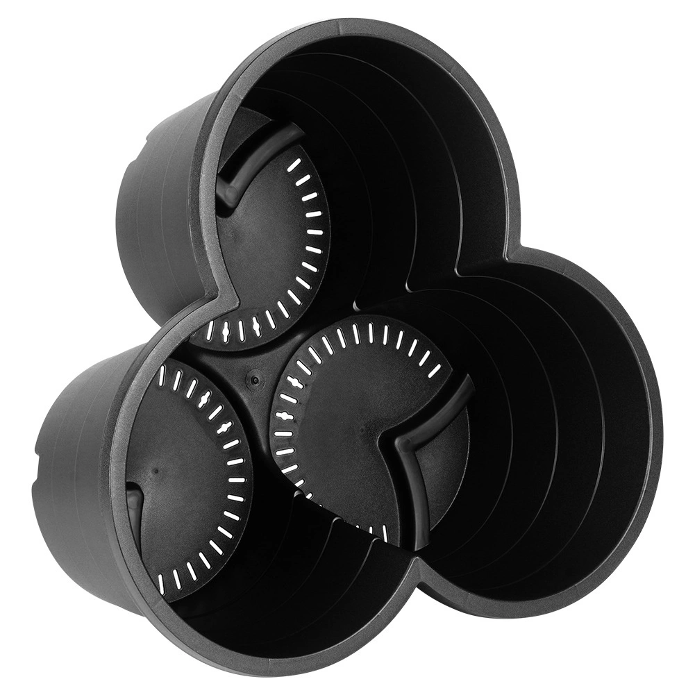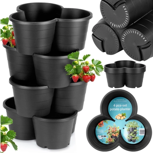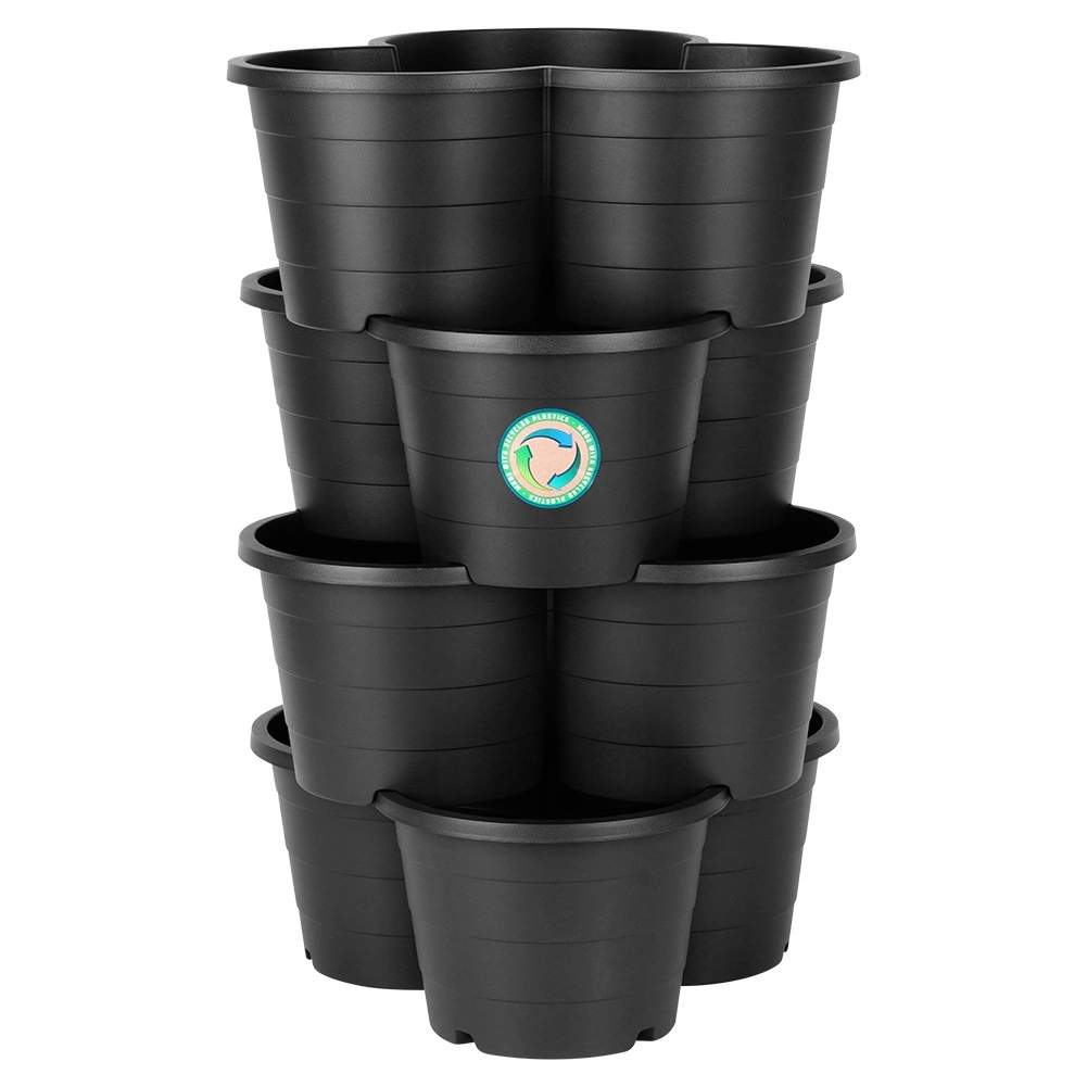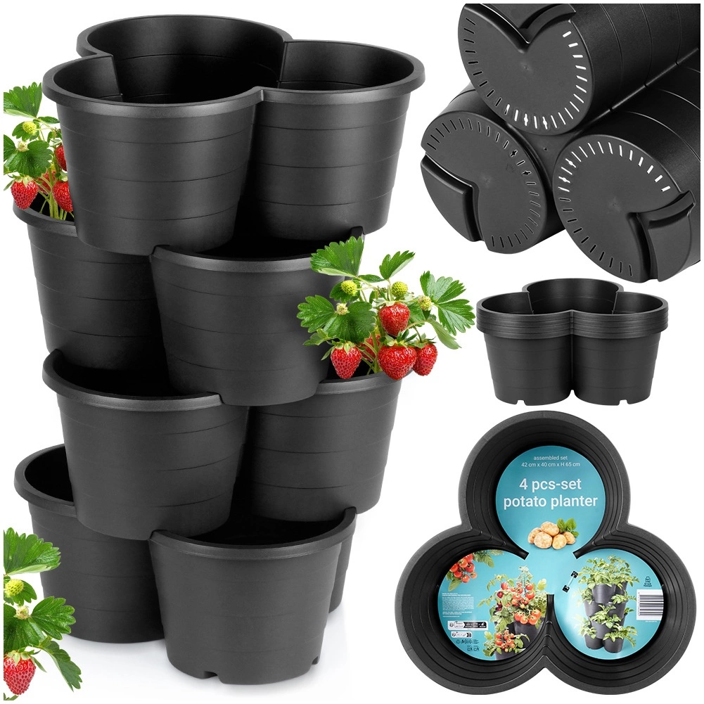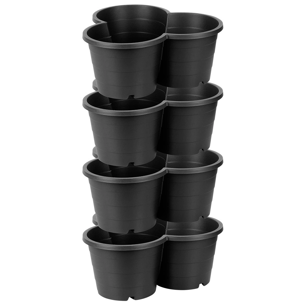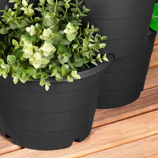 Każdy element mieści trzy różne rośliny i ma zintegrowane otwory drenażowe, które odprowadzają nadmiar wody. Trwały czarny plastik jest łatwy w czyszczeniu i odporny na deszcz, wiatr oraz promieniowanie UV, dzięki czemu kwietniki możesz używać na zewnątrz przez cały rok.