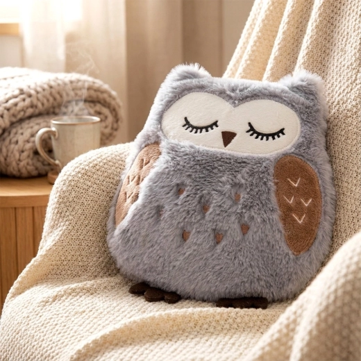 - Miękki pokrowiec – delikatny plusz w kształcie sówki, przyjemny dla skóry.
