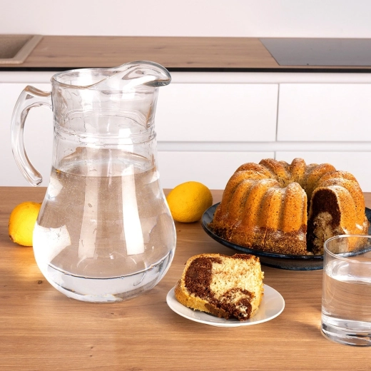 Dzbanek wykonano z wysokiej jakości grubościennego szkła, które jest wytrzymałe i łatwe w utrzymaniu. Nadaje się do zimnych i gorących napojów – od wody i soków, przez lemoniady, po mrożoną herbatę czy kompot. Po użyciu można bez obaw myć w zmywarce.