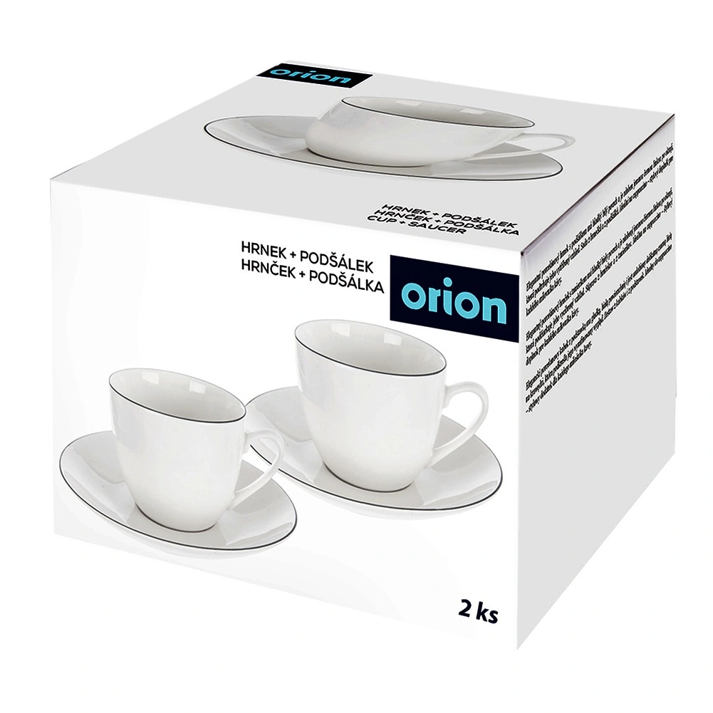 Elegancki zestaw dwóch białych porcelanowych filiżanek ze spodkami o pojemności 200 ml do kawy i herbaty. Minimalistyczny design uzupełnia cienka ciemna linia na krawędzi, która podkreśla ponadczasowy wygląd. Filiżanki mają ergonomiczne ucho dla wygodnego chwytu i można je myć w zmywarce oraz używać w kuchen­ce mikrofalowej.