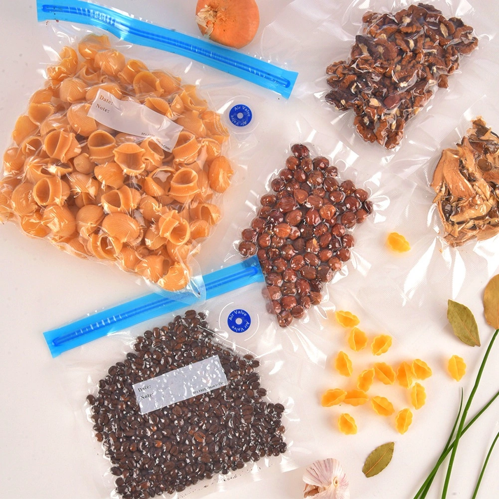 Utrzymaj mięso, sery, warzywa i pieczywo dłużej świeże dzięki niezawodnym workom próżniowym z podwójnym zamkiem i zaworem do szybkiego odsysania powietrza. Jedna strona jest gładka, druga ma tłoczoną strukturę dla równomiernego próżniowania i mocnego zgrzewu.