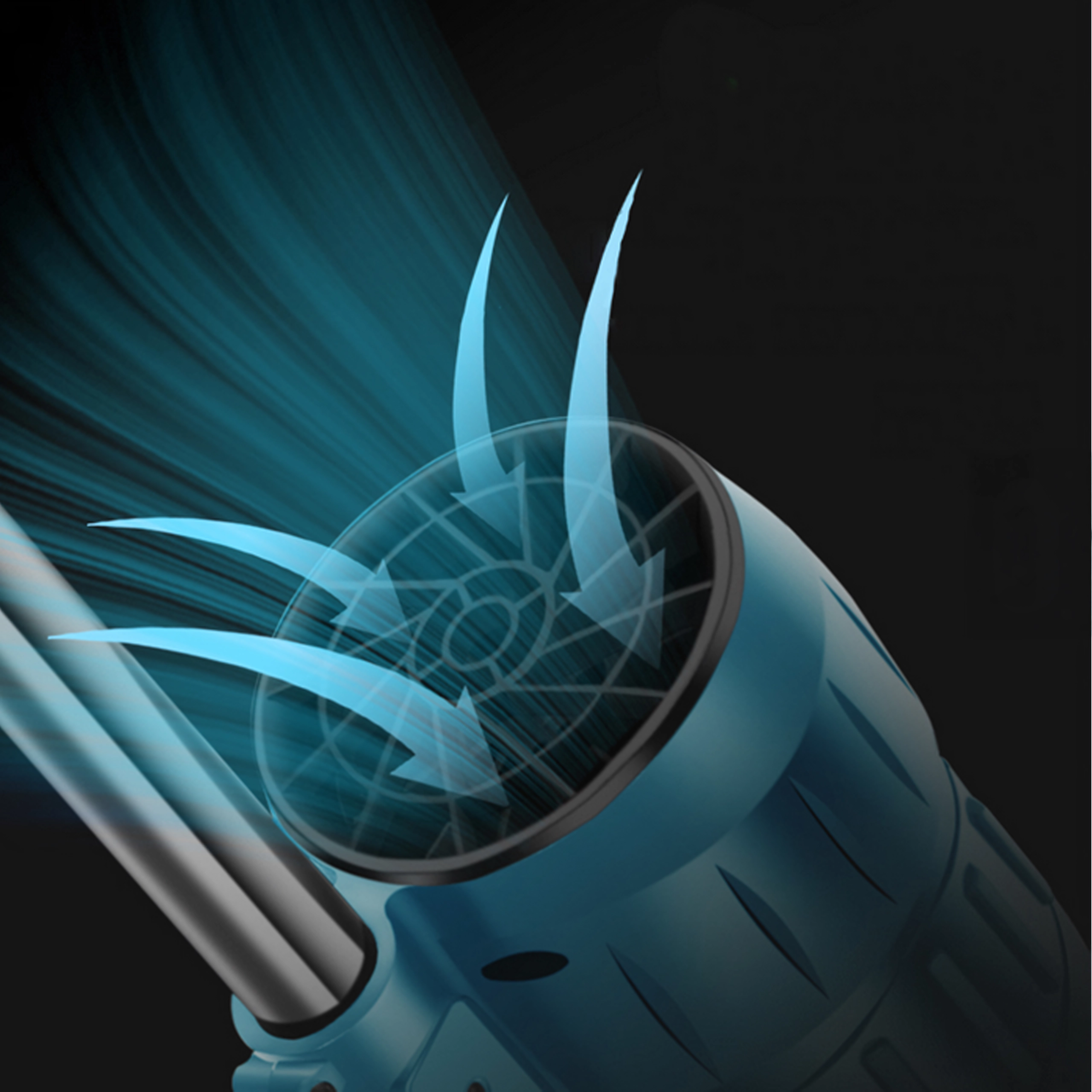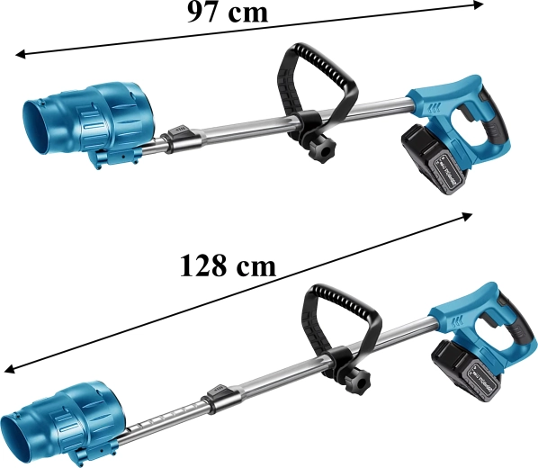 Dopasuj długość narzędzia do wygodnego dmuchania, a po pracy łatwo je złóż. Dodatkowy uchwyt zwiększa pewność chwytu i kontrolę.