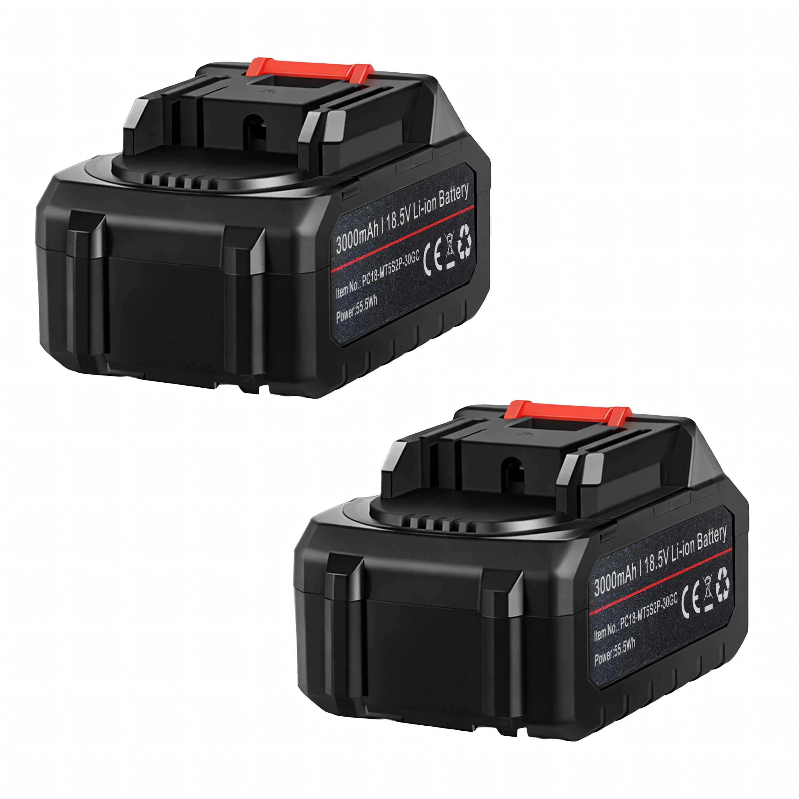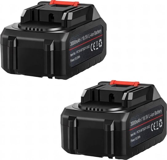 Dwie baterie Li‑ion 18,5 V / 3000 mAh zapewniają stabilną moc i dłuższy czas pracy. Łatwa wymiana akumulatorów utrzymuje Twoją pracę w toku.