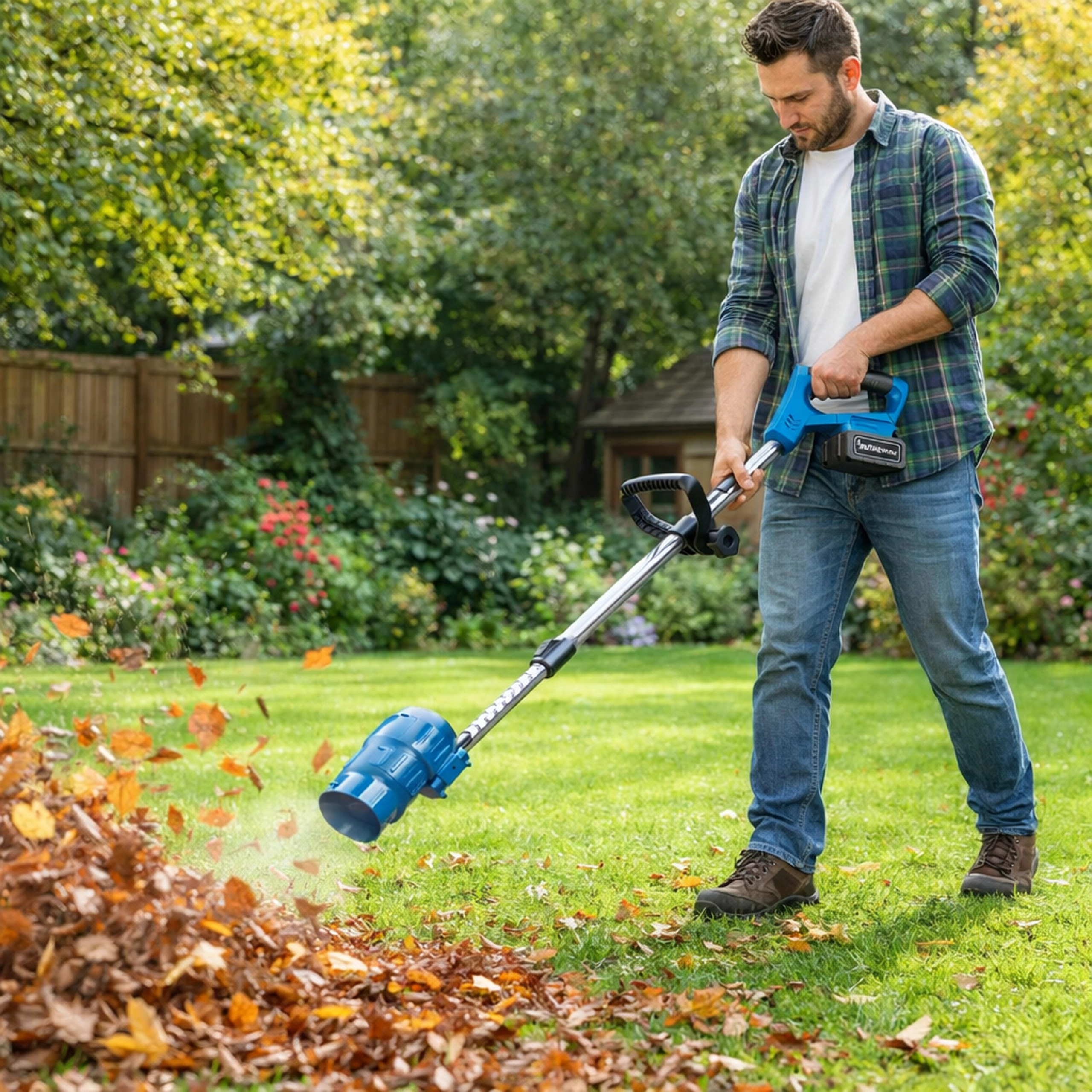 Akumulatorowa dmuchawa to idealny pomocnik do szybkiego i czystego usuwania liści, kurzu oraz drobnych zanieczyszczeń ze ścieżek, podwórek i tarasów. Bez kabla i o niskiej masie, łatwo ją obsłużysz jedną ręką, a dzięki długiej rurze wylotowej dotrzesz także w trudniej dostępne miejsca.