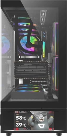Obudowa komputerowa DarkFlash DS950V z wyświetlaczem IPS, czarna, 6 wentylatorów