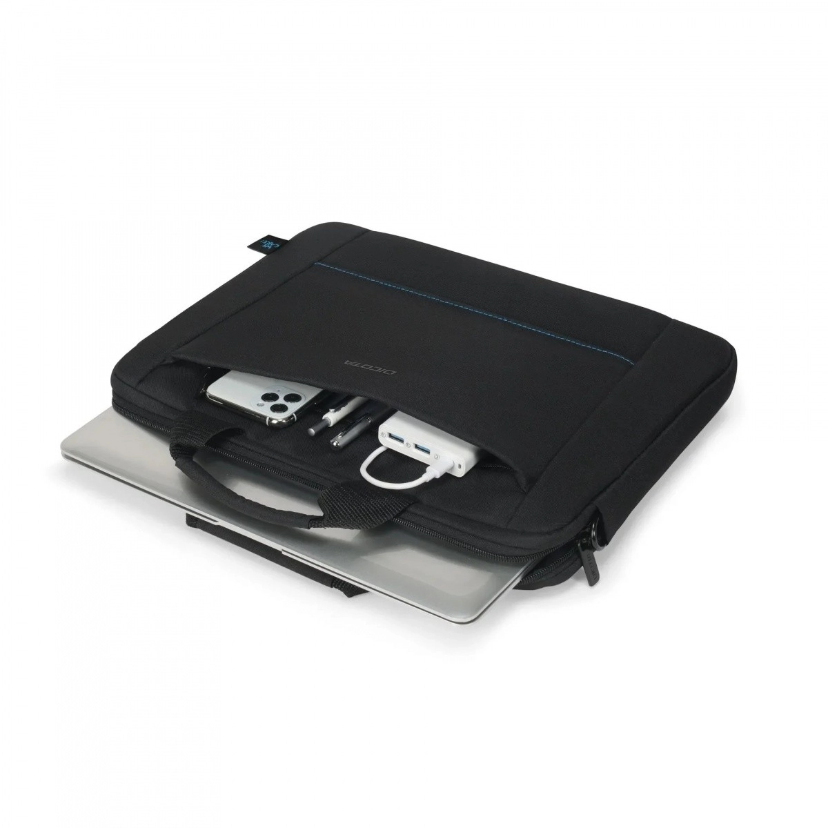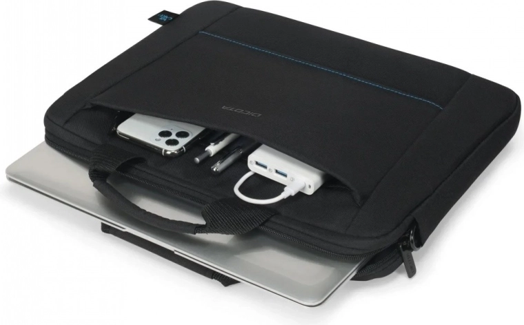 Kompaktowy profil łatwo przenosi się w dłoni i na ramieniu. Przednia kieszeń utrzymuje dokumenty i drobiazgi zawsze pod ręką.