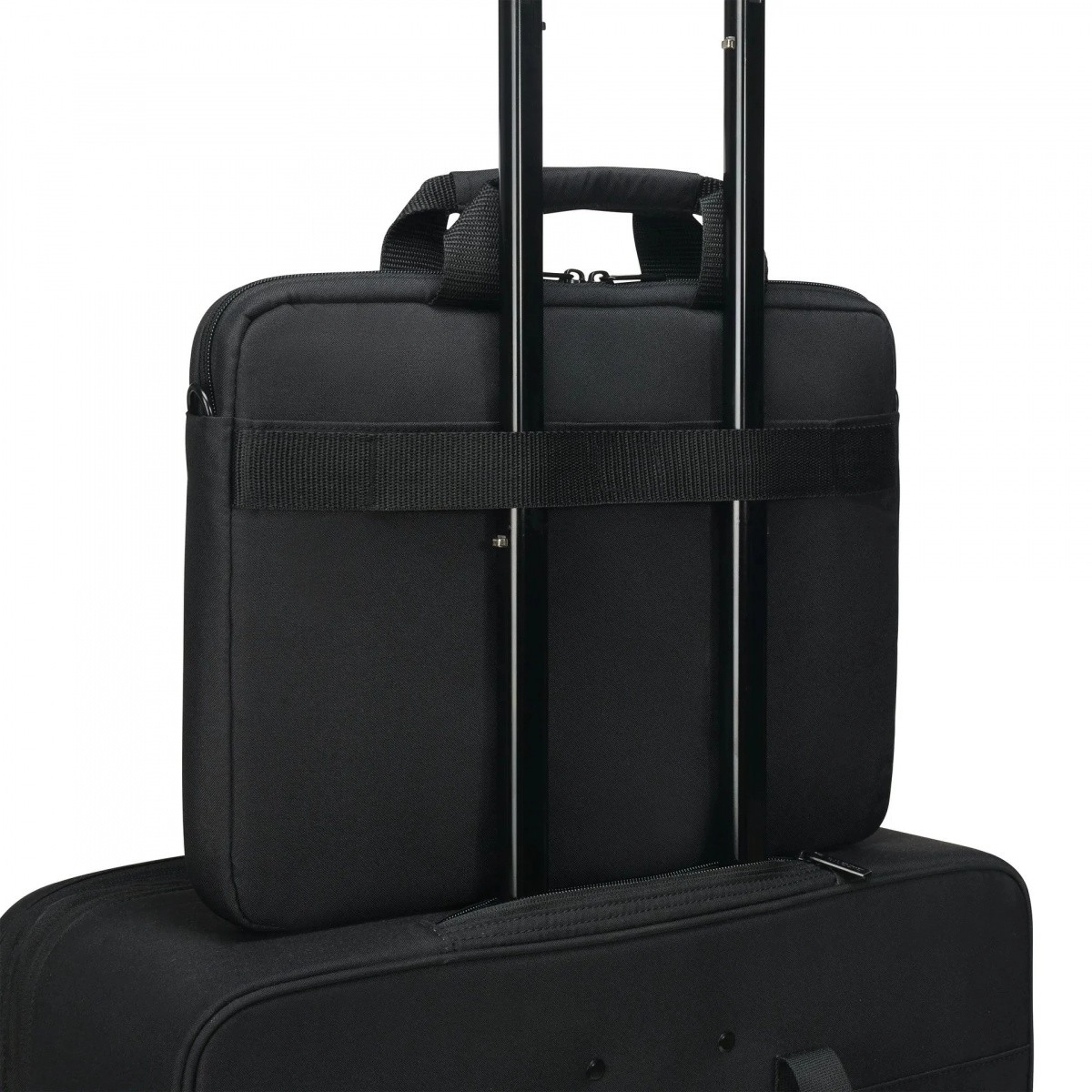 Tylny pasek pozwala nasunąć torbę na teleskopową rączkę walizki i podróżować bez zmartwień.
