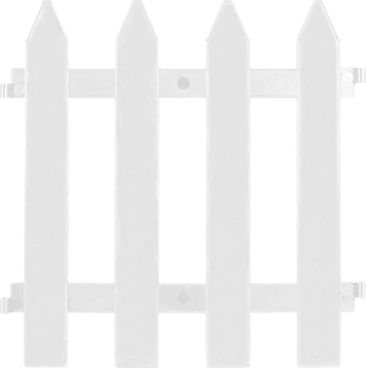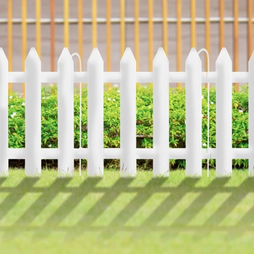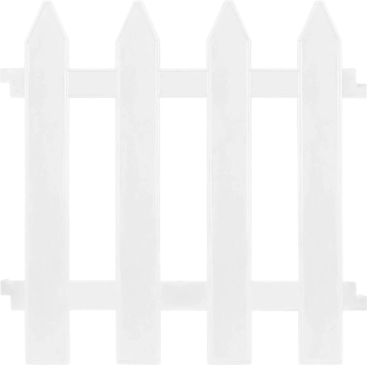 Płotek wykonano z wysokiej jakości, odpornego na warunki pogodowe tworzywa, uzupełnionego o solidne metalowe elementy łączące dla niezawodnej stabilności. Dzięki białemu kolorowi pięknie wyróżnia się na tle zieleni i praktycznie nie wymaga konserwacji.
