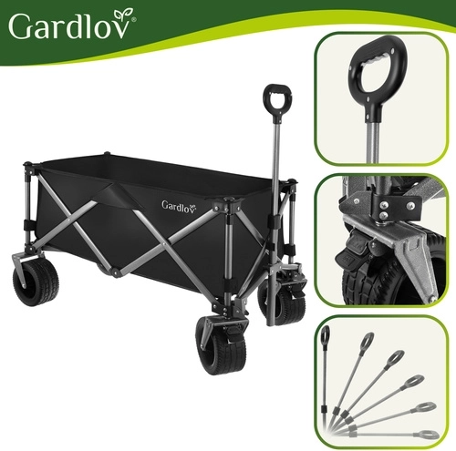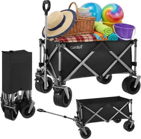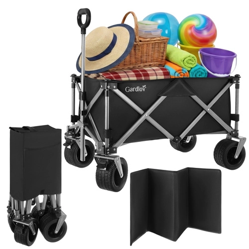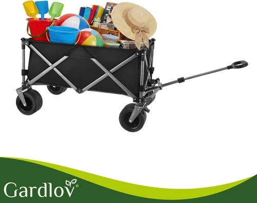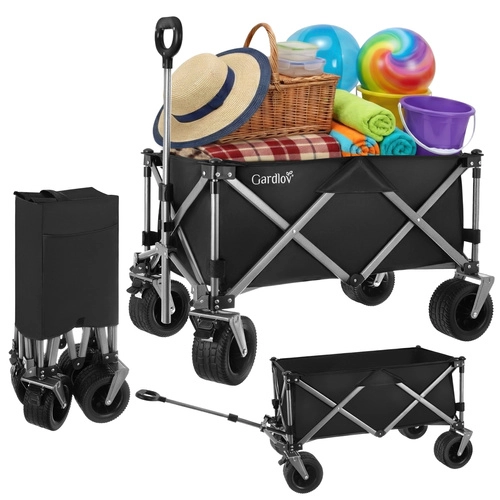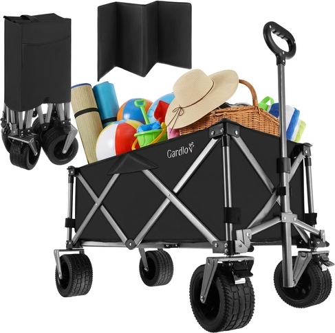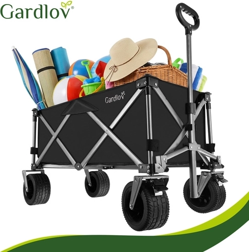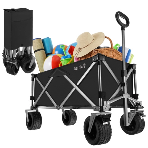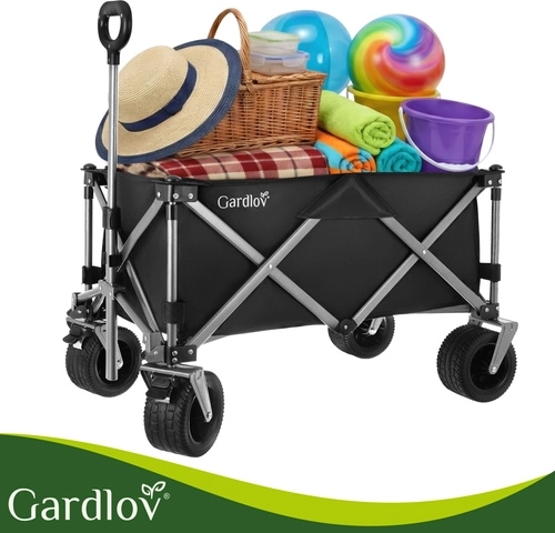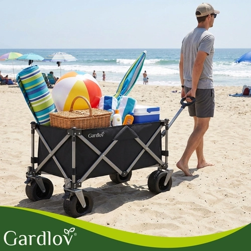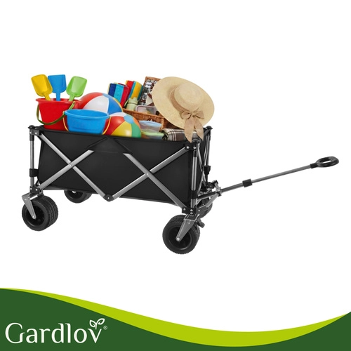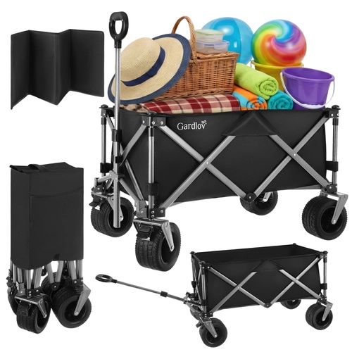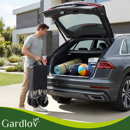 Uniwersalny składany wózek GARDLOV to idealny pomocnik do ogrodu, na plażę, kemping i działkę. Oferuje wyjątkowy udźwig 200 kg, dużą pojemność 150 l oraz wytrzymałą, wodoodporną tkaninę Oxford 600D z powłoką PVC. Dzięki szerokim kołom terenowym, przednim kołom obrotowym 360° i teleskopowej rączce łatwo przewiezie ciężki i nieporęczny ładunek, a po pracy szybko składa się do kompaktowych rozmiarów.