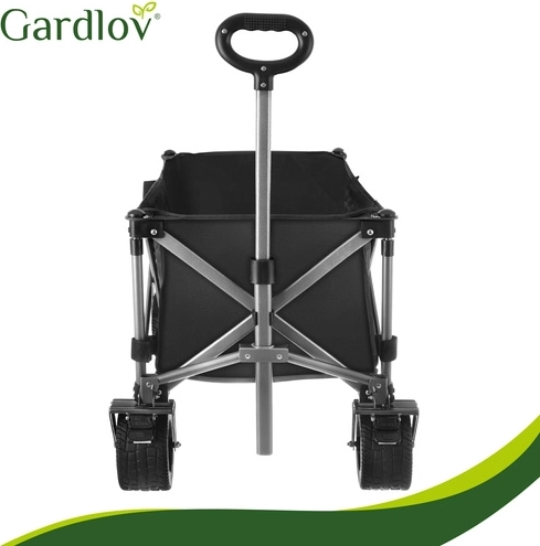 Dzięki szerokim kołom terenowym i przednim kołom obrotowym wózek łatwo prowadzi się po piasku, trawie i żwirze. Teleskopowa rączka z regulowaną wysokością i automatycznym powrotem do 90° zapewnia wygodę osobom o różnym wzroście. Składana konstrukcja umożliwia szybkie złożenie i oszczędne przechowywanie w bagażniku auta lub w szafie.