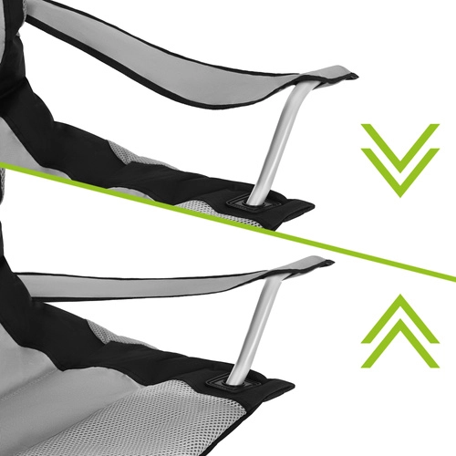 Praktyczny uchwyt na kubek w podłokietniku utrzymuje napój zawsze pod ręką. Płaskie stopki nóg poprawiają kontakt z miękkim podłożem (trawa, piasek), a otwory do przypięcia umożliwiają dodatkowe zabezpieczenie w terenie. Po złożeniu krzesło schowasz do kompaktowego pokrowca transportowego, który zmieści się do samochodu i szafy.