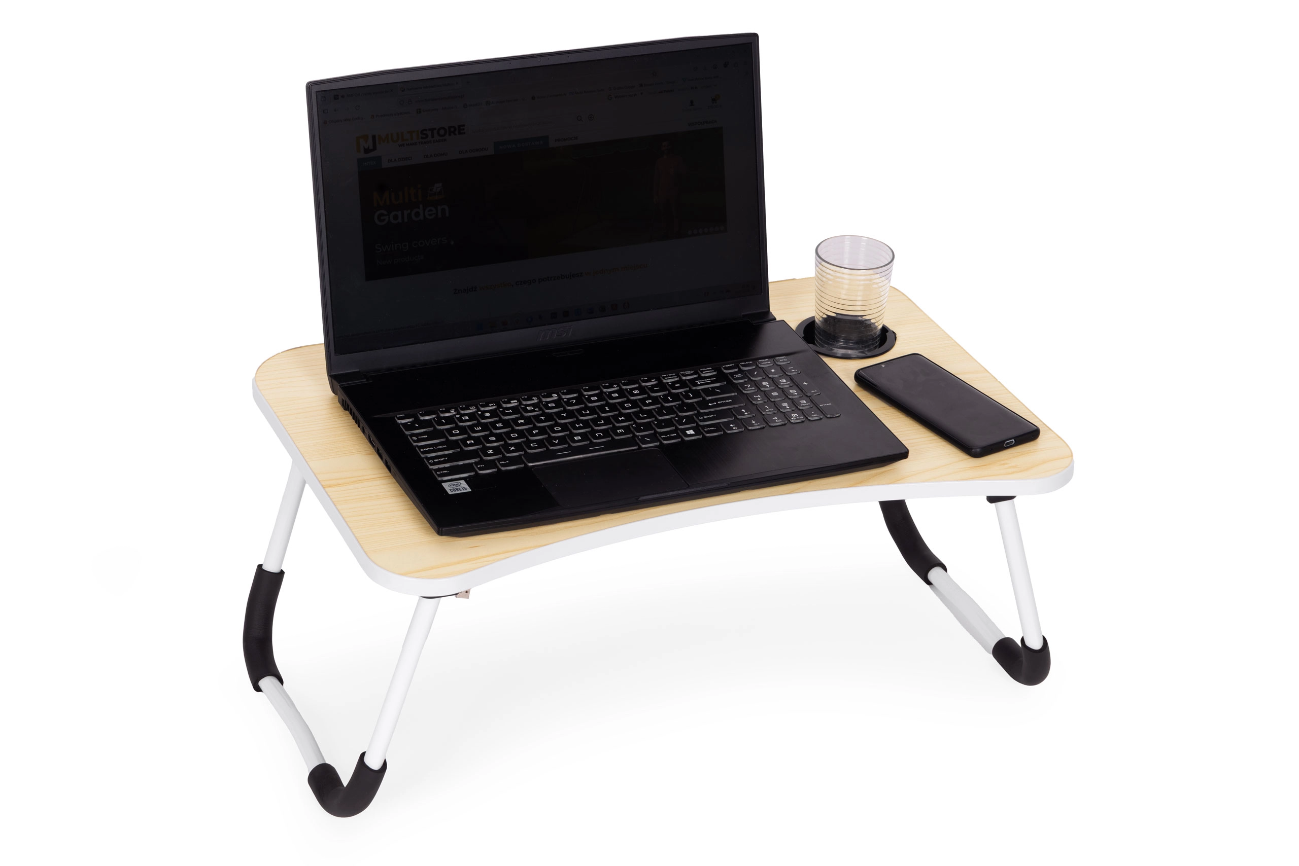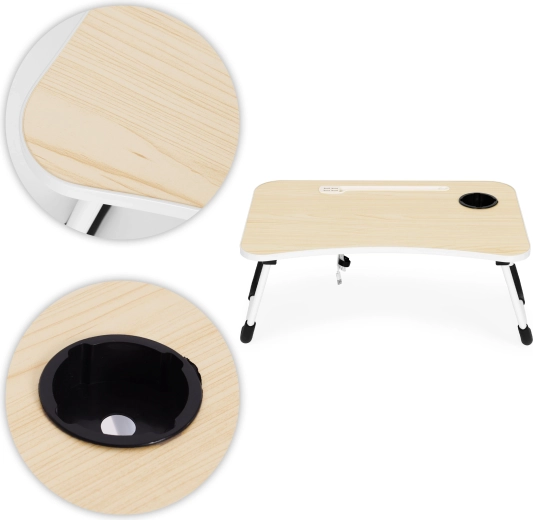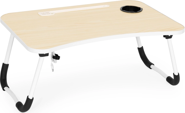 Korzystaj z wygodnej pracy i relaksu gdziekolwiek – w łóżku, na kanapie lub w podróży. Składany stolik na laptopa ModernHome łączy stabilną konstrukcję, praktyczne akcesoria na USB oraz przemyślaną ergonomię. Profilowany blat z miejscem na telefon lub tablet oraz zintegrowany uchwyt na napój utrzymają wszystko pod ręką i w porządku.