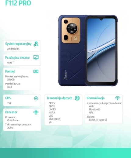 Szukasz telefonu, który nie zawiedzie nawet w trudnym terenie? FOSSIBOT F112 Pro z obudową z płynnego silikonu klasy spożywczej gwarantuje pewny chwyt, podwyższoną odporność i komfort codziennego użytkowania. Certyfikat IP68 chroni przed wodą i kurzem, dlatego świetnie sprawdzi się outdoorowo, na budowie i w warsztacie.
