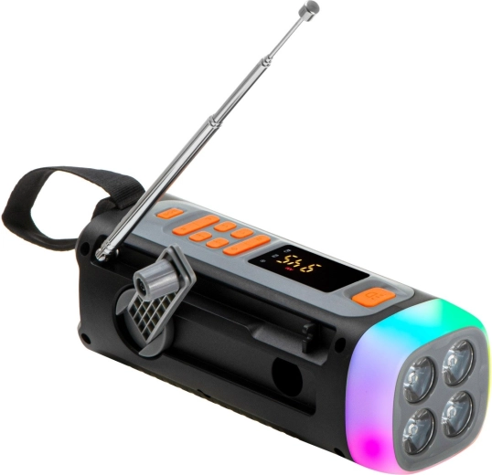 Trzy niezależne źródła energii – panel solarny, ręczna korbka i USB‑C – zapewniają działanie zawsze i wszędzie. W terenie docenisz także tryb SOS (dźwięk + sygnał świetlny), wyświetlacz LED ułatwiający obsługę oraz pętelkę do zawieszenia na plecaku lub w namiocie. Lekka konstrukcja (tylko 310 g) i kompaktowe wymiary mieszczą się w każdym ekwipunku.