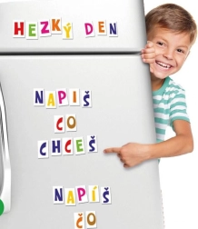 Magnetyczne kolorowe literki odpowiednie na lodówkę, pralkę lub jakąkolwiek inną metalową powierzchnię. Zestaw zawiera 100 liter alfabetu czeskiego, które pozwolą dzieciom tworzyć słowa i zdania, a także wiadomości dla członków gospodarstwa domowego.