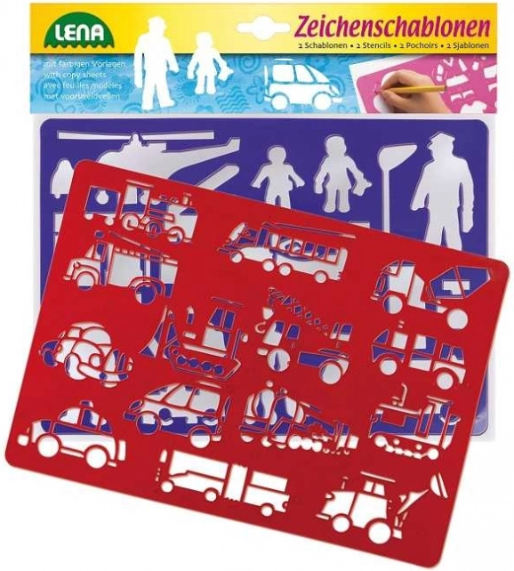 Szablony do rysowania z motywem środków transportu i ludzi, idealne do rozwijania dziecięcej sztuki i wyobraźni. Wspierają także motorykę małą i pomagają dzieciom uczyć się rozróżniania kolorów.