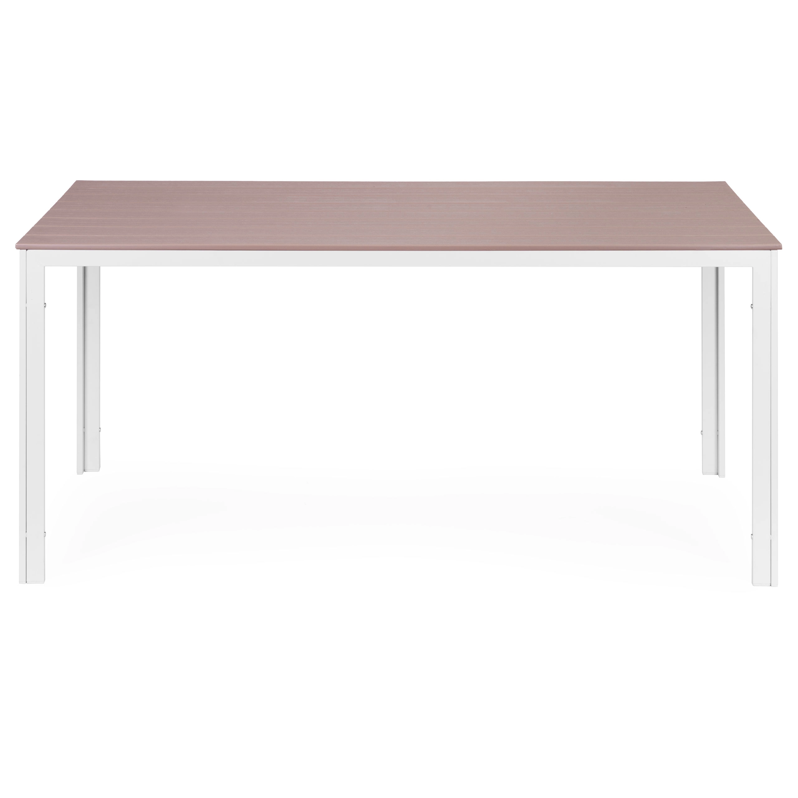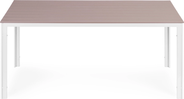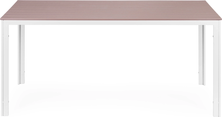 Blat z polywoodu wiernie imituje strukturę drewna, jest odporny na czynniki atmosferyczne, a dzięki prześwitom między lamelami umożliwia odpływ wody. Stalowa rama ze wzmacniającymi poprzeczkami zapewnia stabilność i długą żywotność, a regulowane ochronne stopki chronią podłogę tarasu lub balkonu przed zarysowaniami.