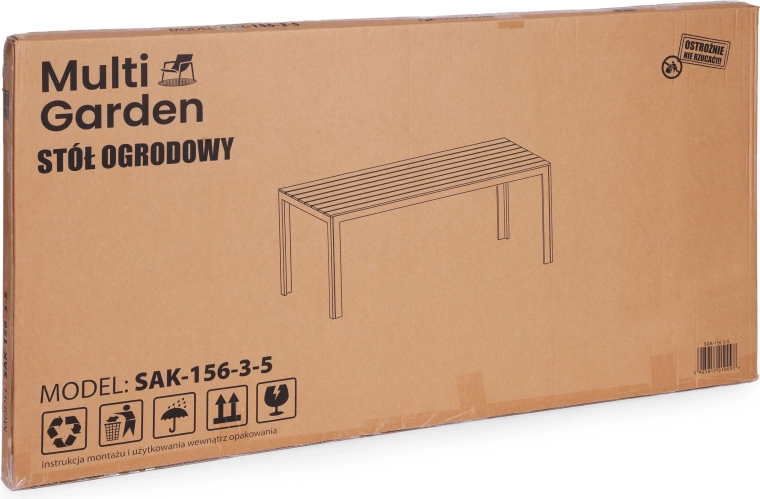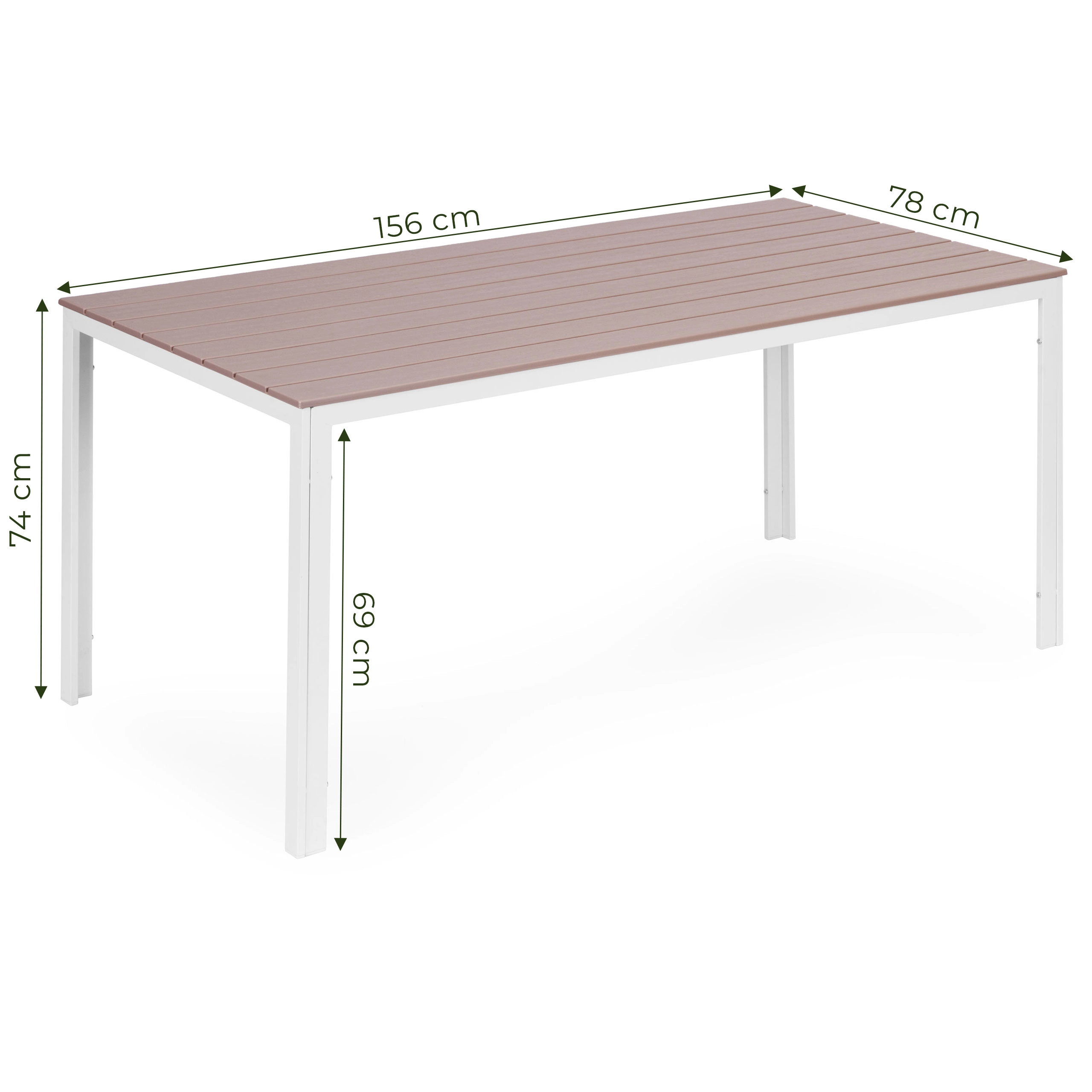 Wymiary 156 × 78 cm zapewniają dużo miejsca na rodzinne kolacje, grillowanie i spotkania z przyjaciółmi. Konstrukcja lamelowa ułatwia odpływ wody i utrzymuje powierzchnię w suchości.