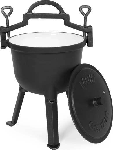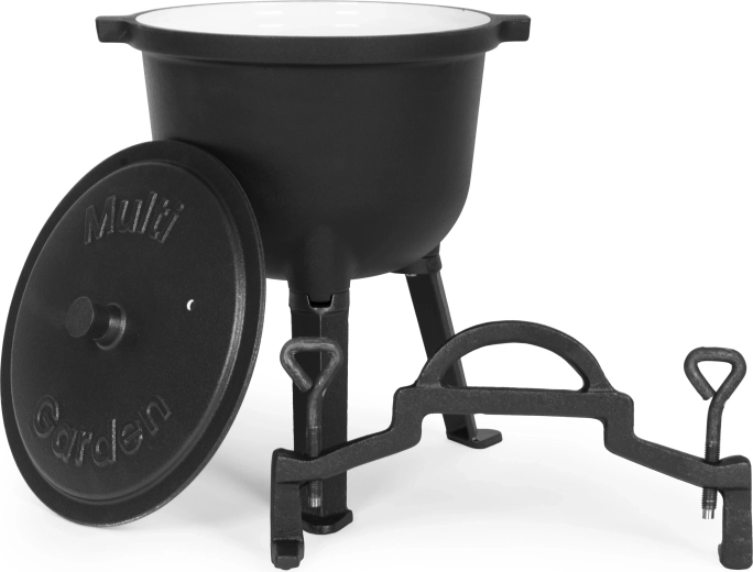 Delektuj się autentycznym gotowaniem na otwartym ogniu z żeliwnym kociołkiem MULTIGARDEN. Mastywna konstrukcja wytrzymuje bardzo wysokie temperatury, a emaliowana powierzchnia wewnątrz jest gładka i higieniczna i nie wymaga wypalania ani sezonowania. Idealny do gulaszy, zup, ragu oraz powolnego duszenia mięsa – na zewnątrz i w domu.