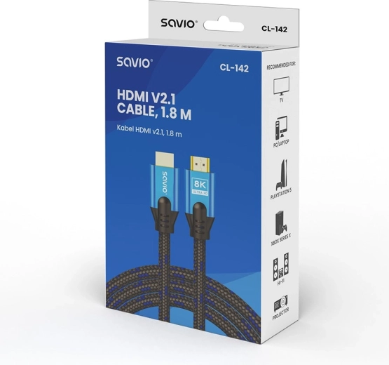 Delektuj się perfekcyjnie płynnym wideo i czystym dźwiękiem z kablem HDMI 2.1. Obsługa rozdzielczości 8K@60 Hz oraz 4K@120 Hz gwarantuje najwyższą jakość w grach i podczas oglądania filmów. Pozłacane złącza i wielowarstwowe ekranowanie zapewniają stabilną transmisję bez zakłóceń.