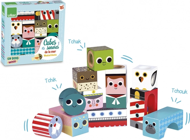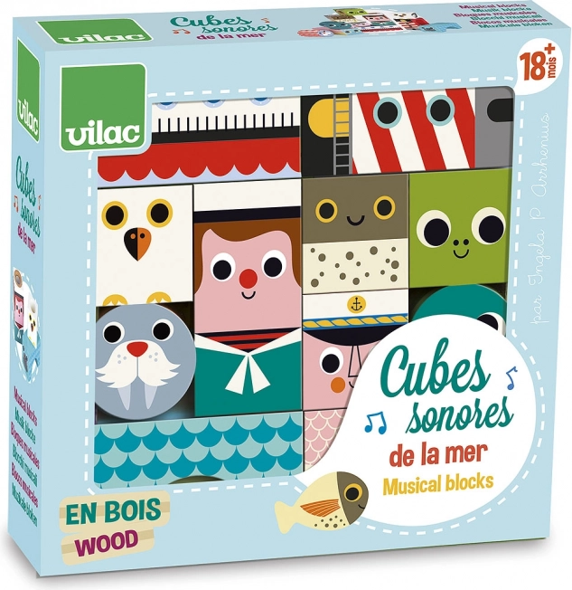 Vilac drewniane klocki dźwiękowe z motywem morza, 11 szt.