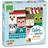 Sensoryczne drewniane klocki z morskimi motywami przynoszą dzieciom radość z odkrywania kształtów, kolorów i dźwięków. Podczas potrząsania i budowania dzieci ćwiczą chwyt, koordynację i koncentrację, a różne elementy dźwiękowe wspierają ich słuch. Ilustracje Ingeli P. Arrhenius nadają zestawowi wyjątkowy retro charakter i figlarny styl.