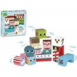 Opakowanie zawiera 11 starannie wykonanych klocków z wytrzymałego drewna. Dzieci mogą układać z nich wieże, sortować według motywów lub kolorów oraz tworzyć własne morskie opowieści – wszystko to naturalnie rozwija kreatywność i wyobraźnię. Kompaktowe opakowanie sprawdzi się w podróży i w dziecięcym pokoju.