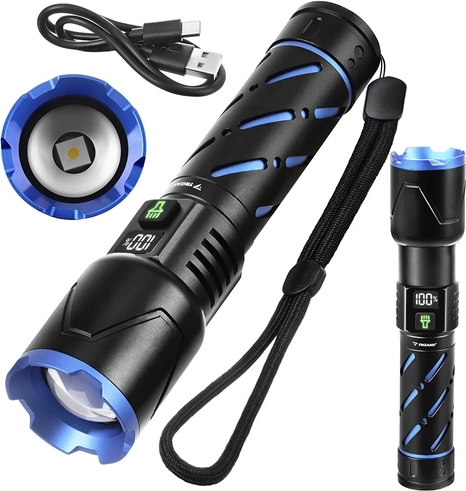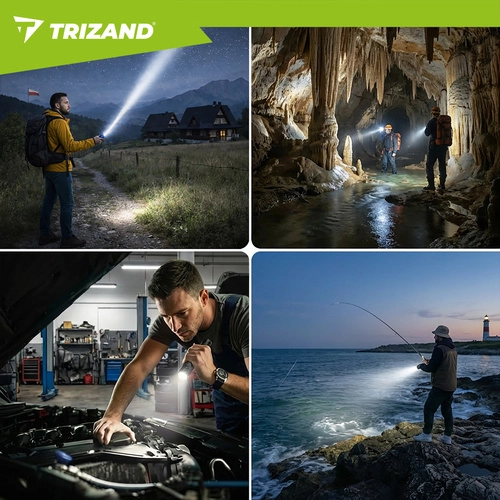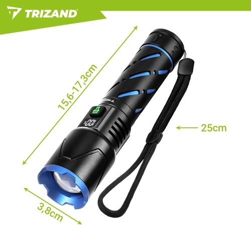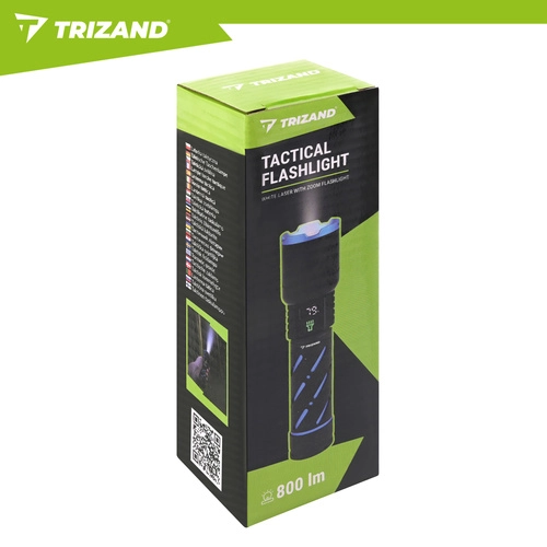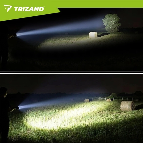 Ta kompaktowa taktyczna latarka LED TRIZAND łączy wysoką wydajność z długim czasem pracy i solidnym wykonaniem. 800 lumenów oraz zasięg do 200 metrów zapewniają pewność poruszania się po zmroku, a zoom umożliwia przełączanie między szerokim stożkiem światła a wąską, skupioną wiązką.