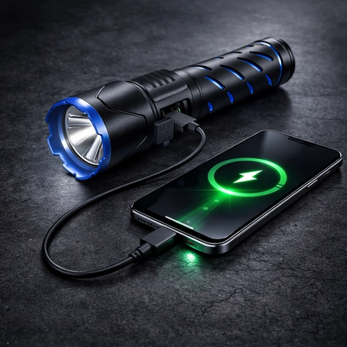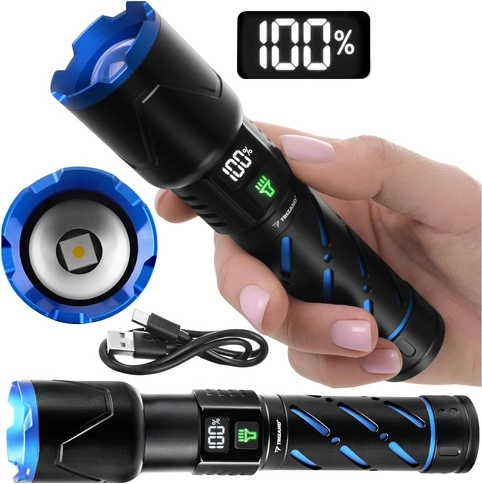 Dzięki akumulatorowi 21700 o pojemności 5000 mAh latarka zapewnia 3–12 godzin pracy (w zależności od trybu). Ładowanie przez USB‑C jest szybkie i wygodne, dostępne jest też wyjście USB do funkcji powerbanku. Cyfrowy wyświetlacz na korpusie latarki pokazuje bieżący stan baterii, więc zawsze wiesz, kiedy czas naładować.