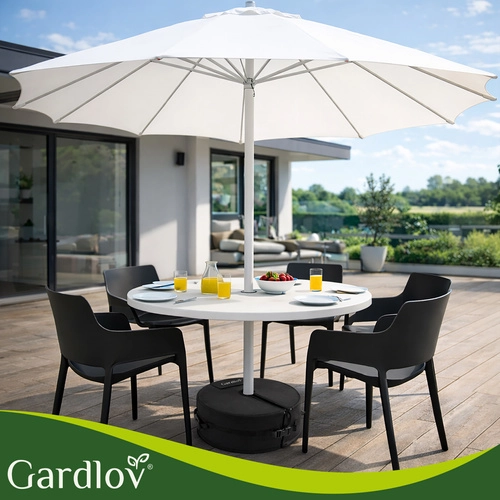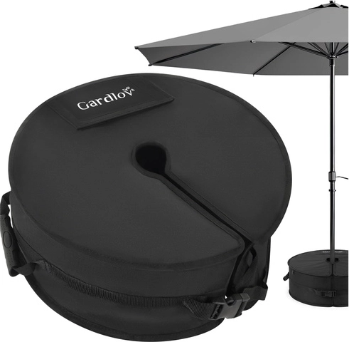 Utrzymaj swój ogrodowy parasol stabilnie na miejscu dzięki napełnianemu piaskiem workowi obciążającemu GARDLOV. Po napełnieniu zapewnia aż 40 kg dodatkowego obciążenia dla stabilności nawet przy wietrze. Wytrzymała tkanina Oxford, wodoodporne wykonanie, wzmocnione szwy oraz praktyczne uchwyty i klamry ułatwiają przenoszenie i szybkie mocowanie.