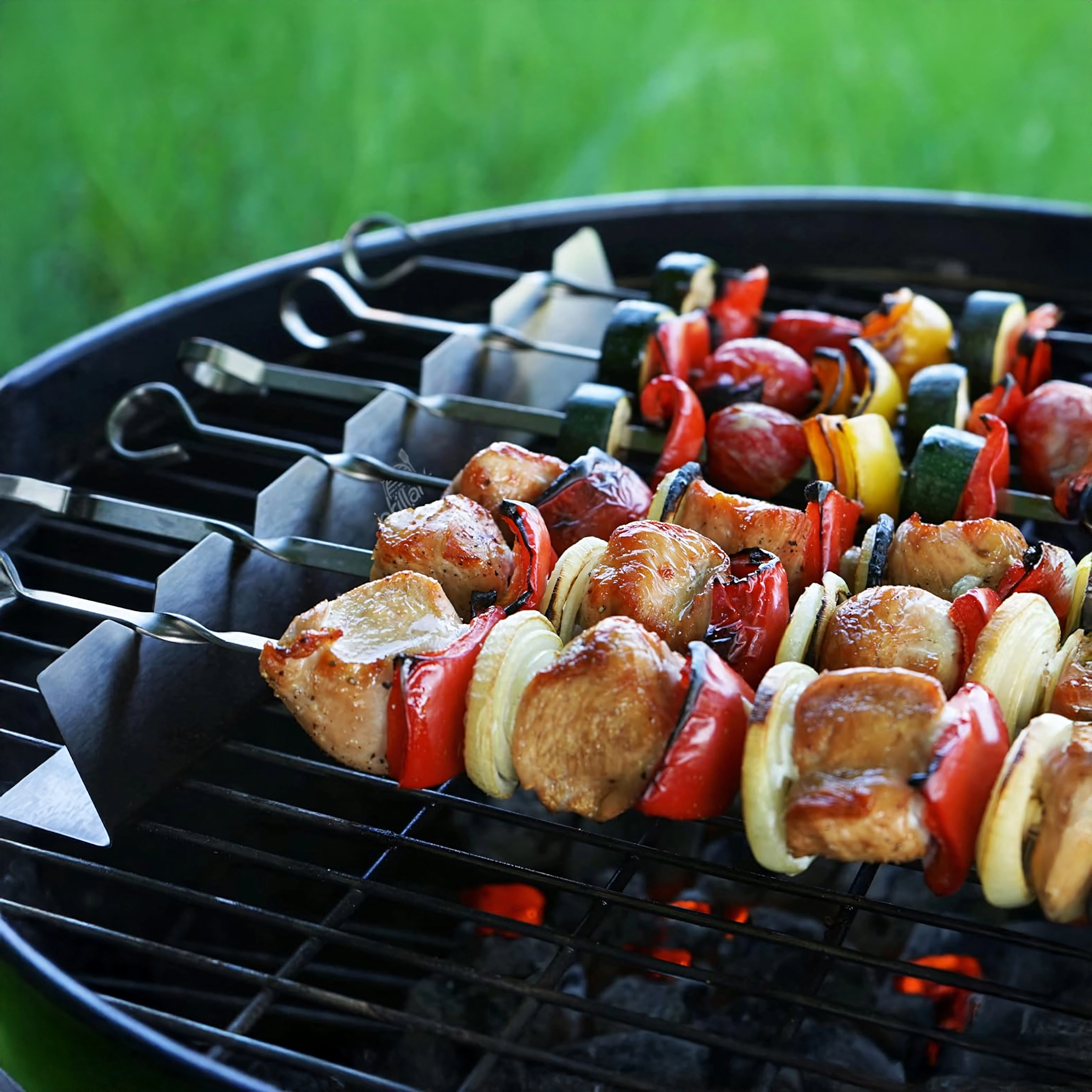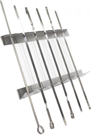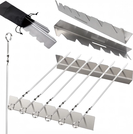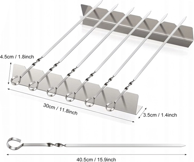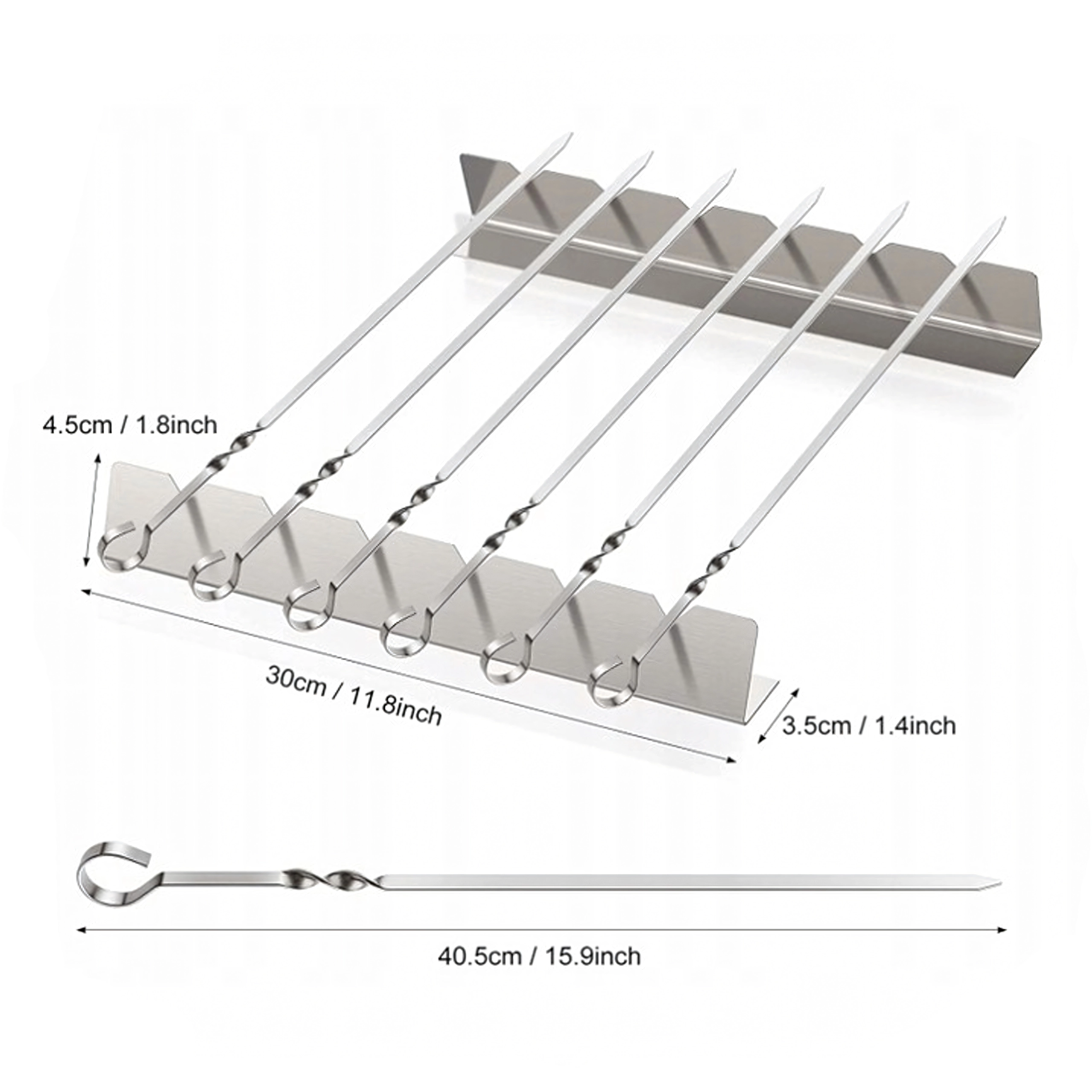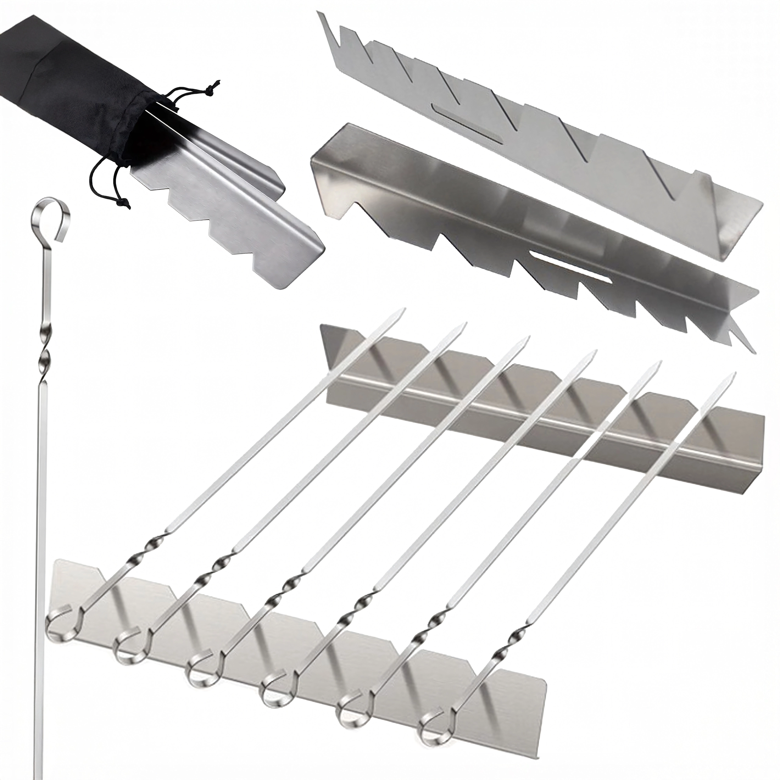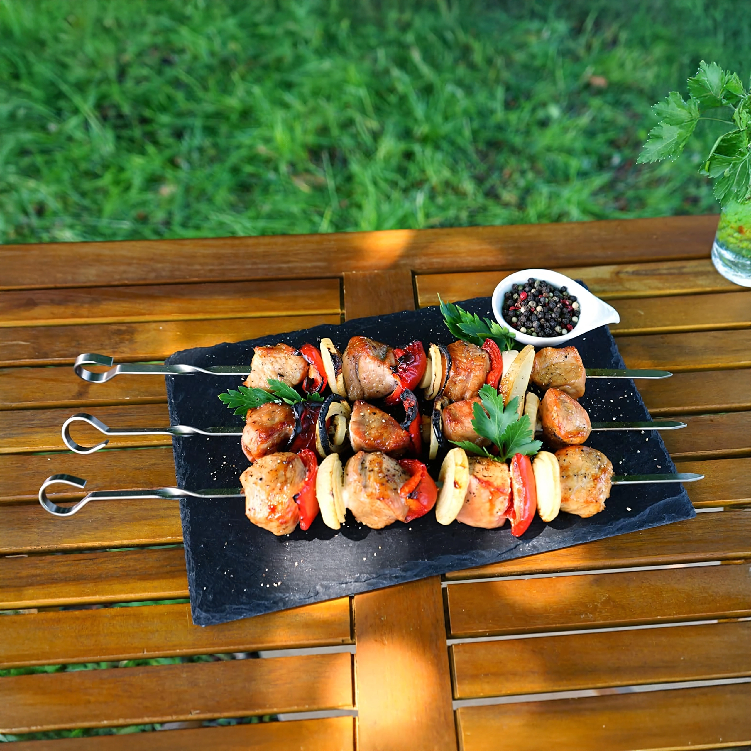 Ten wysokiej jakości zestaw szpikulców ze stali nierdzewnej został zaprojektowany do wygodnego i równomiernego grillowania mięsa, warzyw oraz owoców morza. Płaskie ostrza zapobiegają obracaniu się produktów, a stojak z podniesioną wysokością utrzymuje szpikulce nad żarem, zapewniając równomierne dopieczenie bez przypiekania.